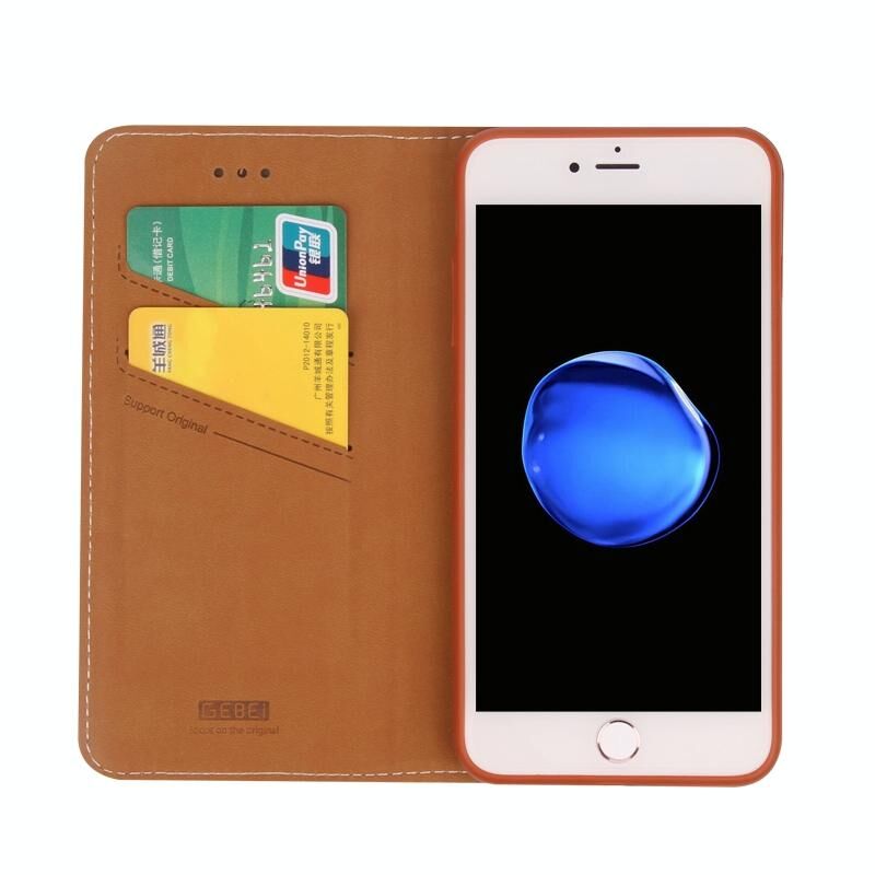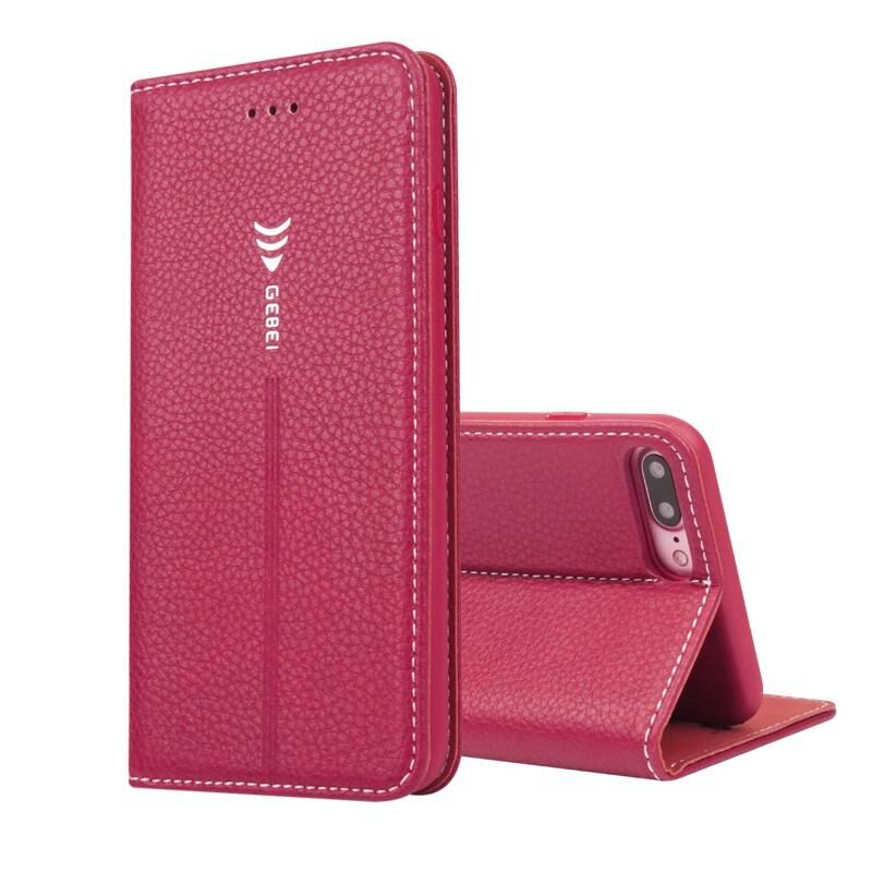 Θήκη προστασίας οριζόντιας αναδίπλωσης GEBEI PU+TPU με βάση & θήκες καρτών για iPhone SE 2020 & 8 & 7 (Μαύρο) (Ροζέ κόκκινο)