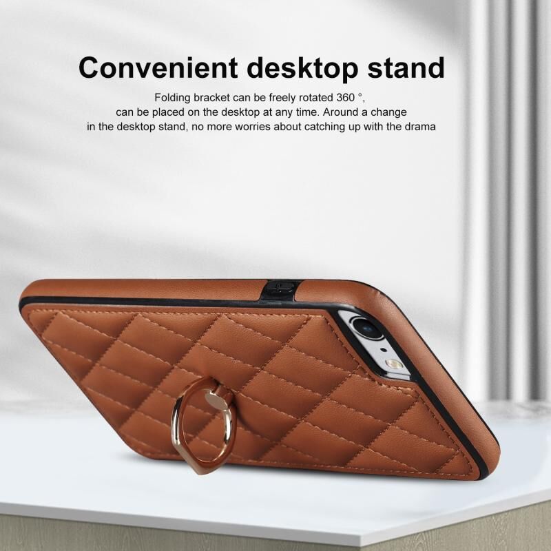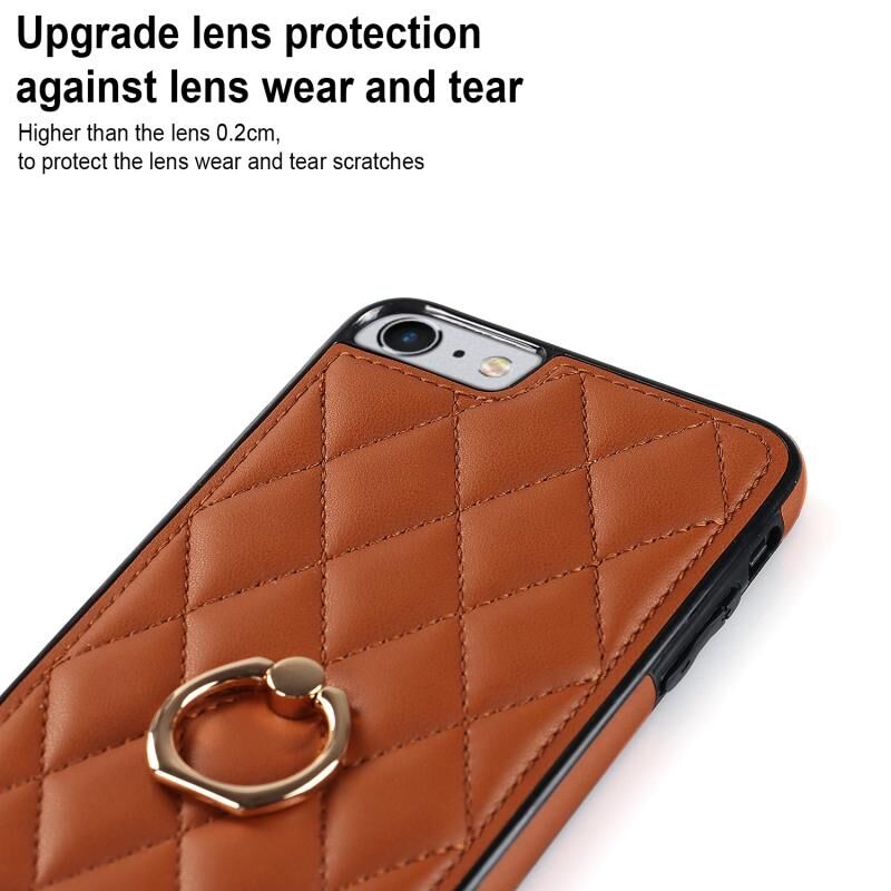 For iPhone SE 2020 / SE 2022 / 7 / 8 Rhombic PU Leather Phone Case with Ring Holder(Brown)