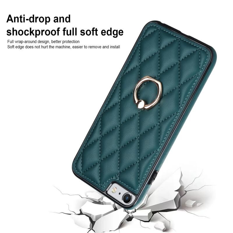 For iPhone SE 2020 / SE 2022 / 7 / 8 Rhombic PU Leather Phone Case with Ring Holder(Green)