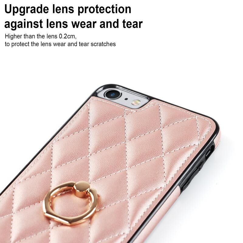 For iPhone SE 2020 / SE 2022 / 7 / 8 Rhombic PU Leather Phone Case with Ring Holder(Rose Gold)