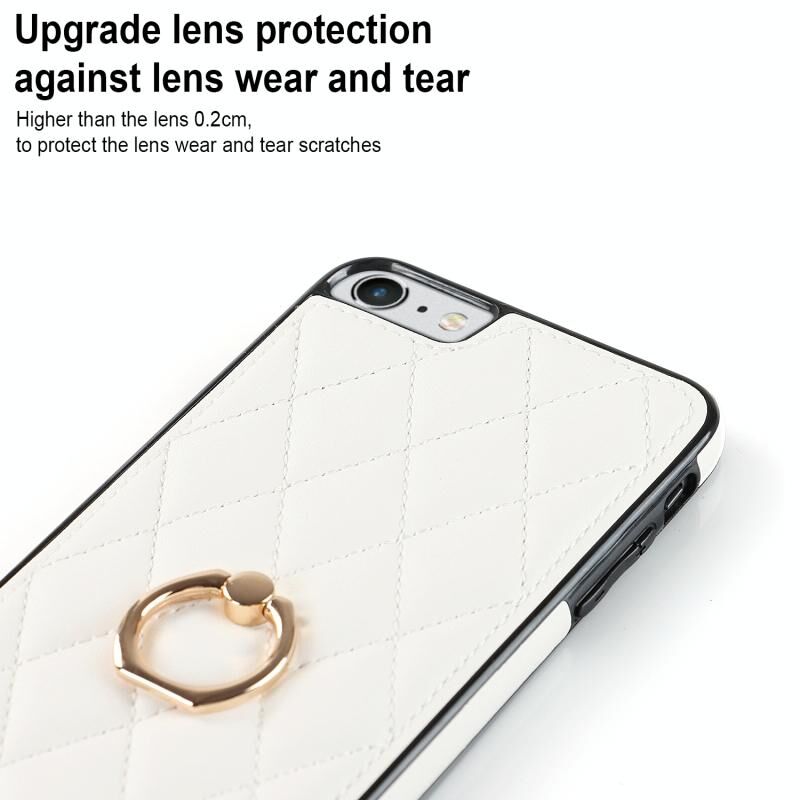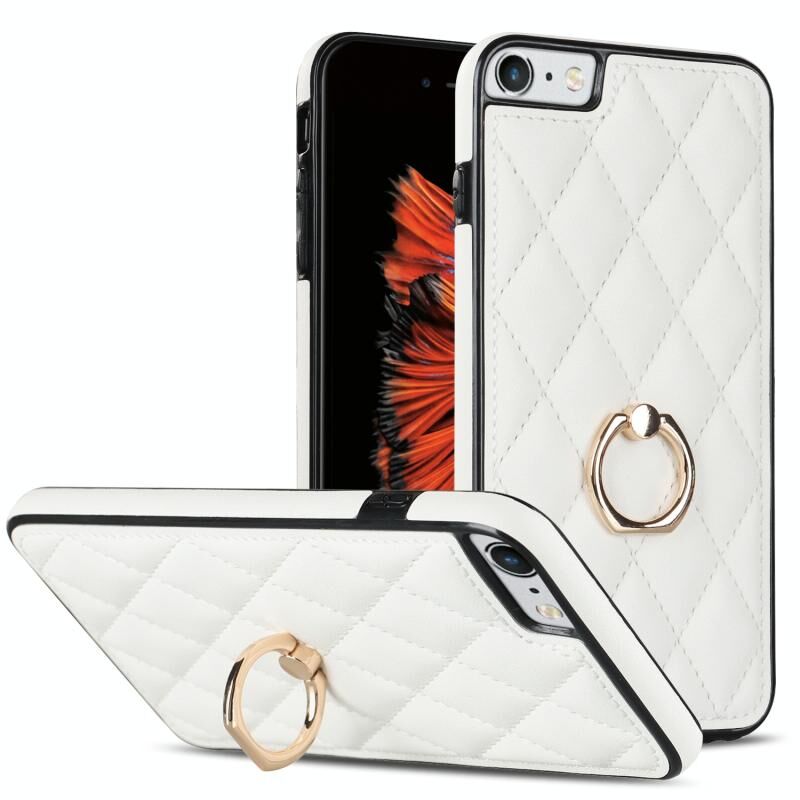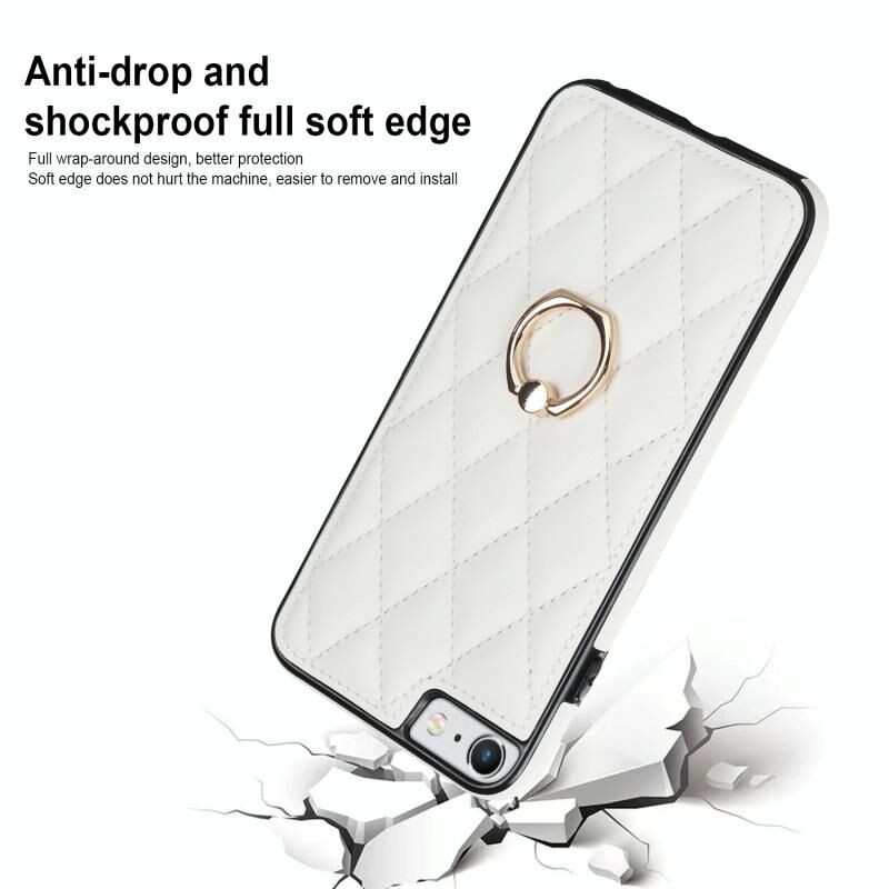 For iPhone SE 2020 / SE 2022 / 7 / 8 Rhombic PU Leather Phone Case with Ring Holder(White)