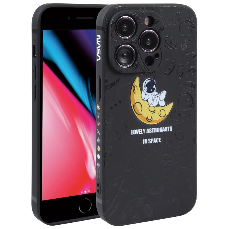 Θήκη τηλεφώνου σιλικόνης με ευθείες άκρες και σχέδιο αστροναύτη για iPhone SE 2022 / 2020 / 7 / 8 (Υπέροχος αστροναύτης-μαύρο)