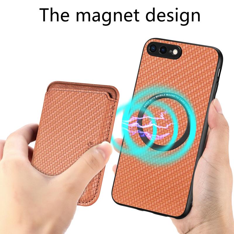 For iPhone SE 2022 / 2020 / 7 / 8 Carbon Fiber Leather Card Magsafe Magnetic Phone Case(Brown)
