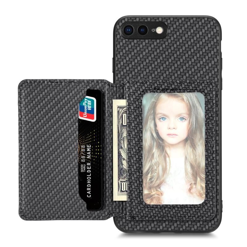 Θήκη τηλεφώνου με μαγνητική θήκη καρτών από ανθρακονήματα για iPhone SE 2022 / 2020 / 7 / 8 (Μαύρο)