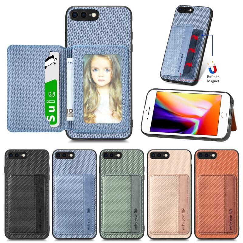 Θήκη τηλεφώνου με μαγνητική θήκη καρτών από ανθρακονήματα για iPhone SE 2022 / 2020 / 7 / 8 (Μαύρο)