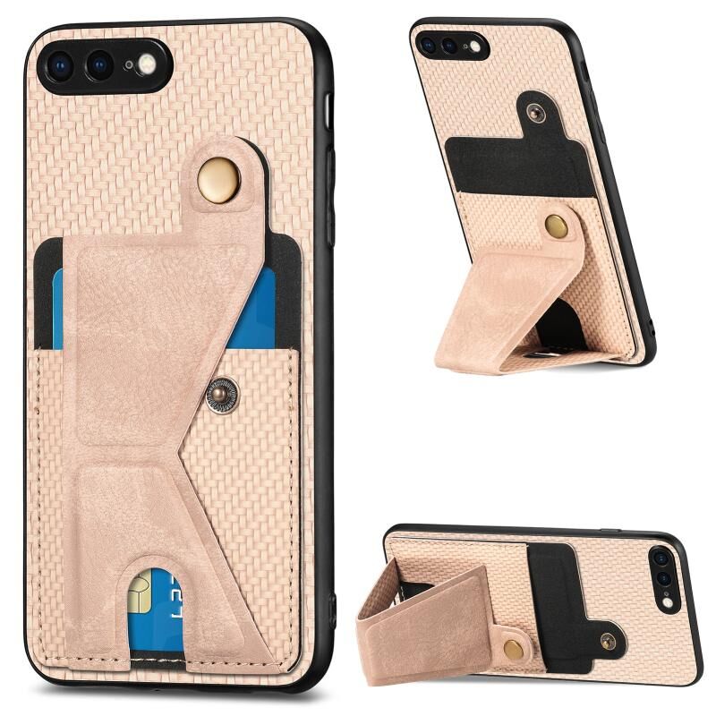 Θήκη κινητού τηλεφώνου τύπου πορτοφολιού με κάρτες, από ανθρακονήματα, σε σχήμα Κ, για iPhone SE 2022 / 2020 / 7 / 8 (Μαύρο)