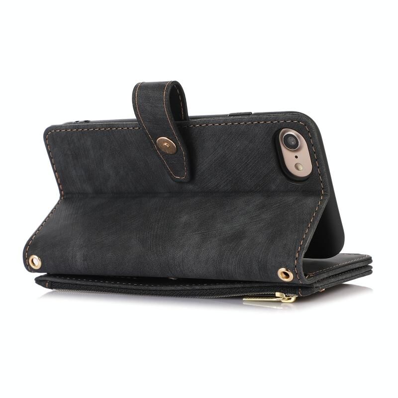 Θήκη τηλεφώνου από δέρμα με φερμουάρ και θήκη πορτοφολιού 9 καρτών Dream για iPhone SE 2022 / 2020 / 7 / 8 (Μαύρο)