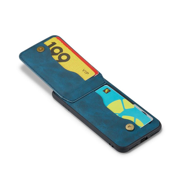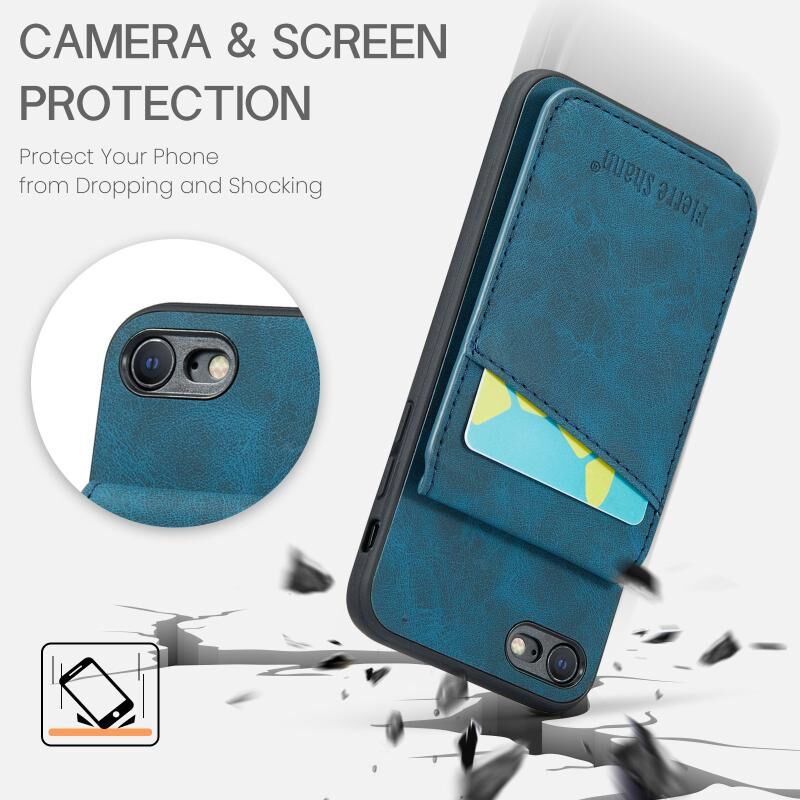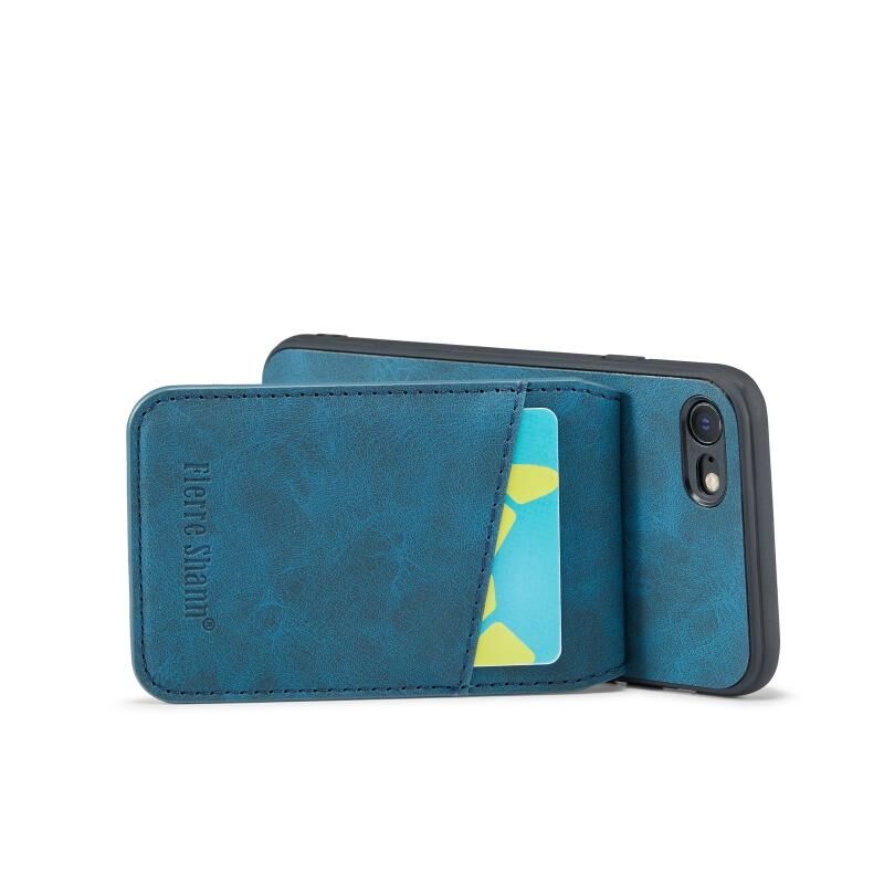 For iPhone SE 2022 / 2020 / 7 / 8 Fierre Shann Crazy Horse Card Holder Back Cover PU Phone Case(Blue) (FIERRE SHANN)