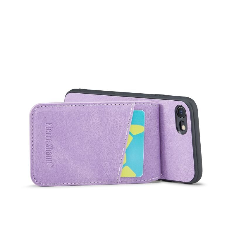 For iPhone SE 2022 / 2020 / 7 / 8 Fierre Shann Crazy Horse Card Holder Back Cover PU Phone Case(Purple) (FIERRE SHANN)