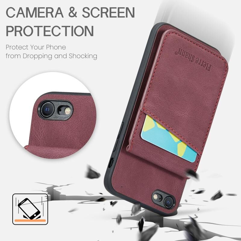 For iPhone SE 2022 / 2020 / 7 / 8 Fierre Shann Crazy Horse Card Holder Back Cover PU Phone Case(Wine Red) (FIERRE SHANN)