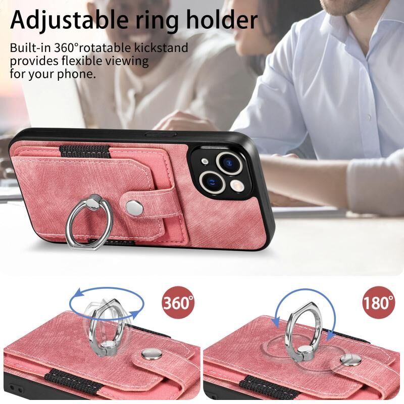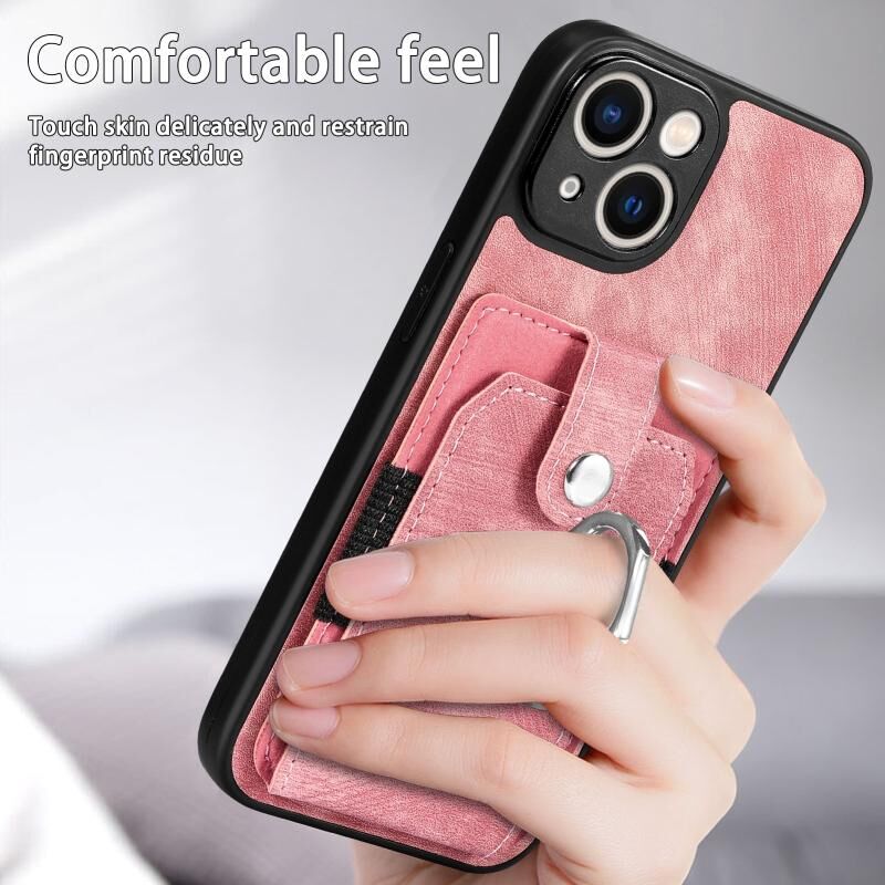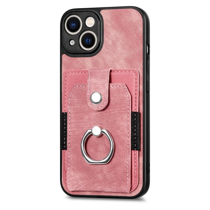 For iPhone SE 2022 / 2020 / 7 / 8 Retro Skin-feel Ring Card Wallet Phone Case(ρόζ)