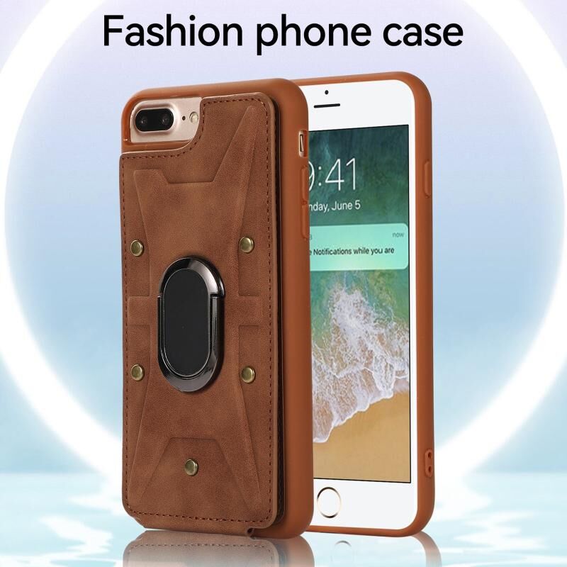 For iPhone SE 2022 / 2020 / 8 / 7 Armor Ring Wallet Back Cover Phone Case(Brown)
