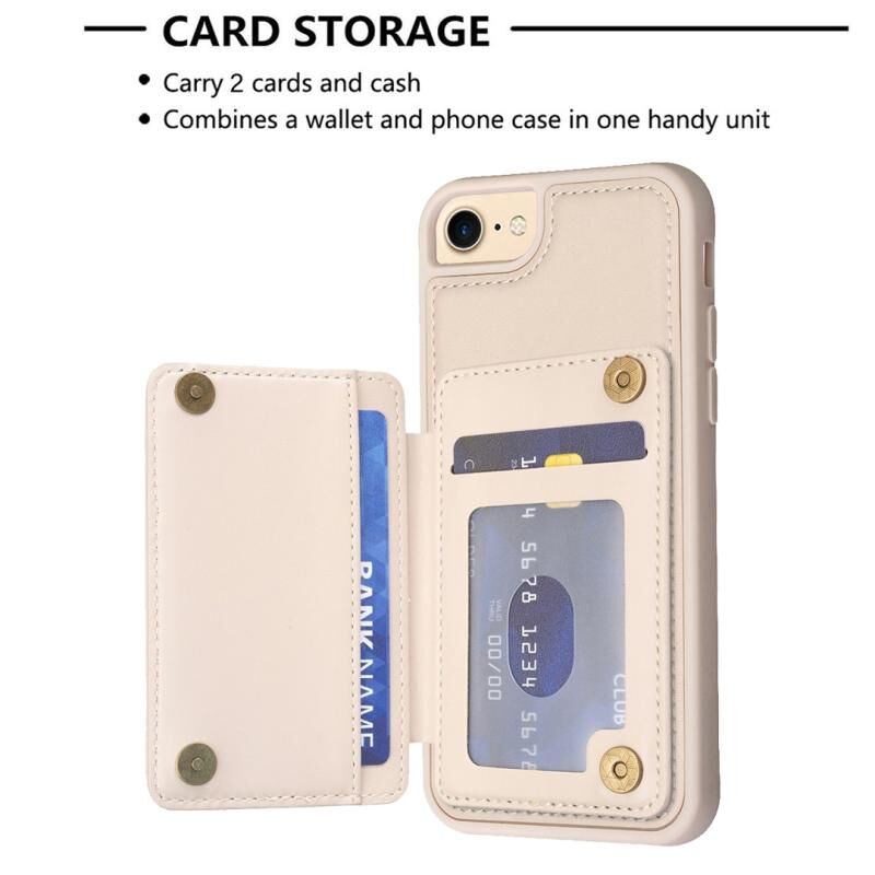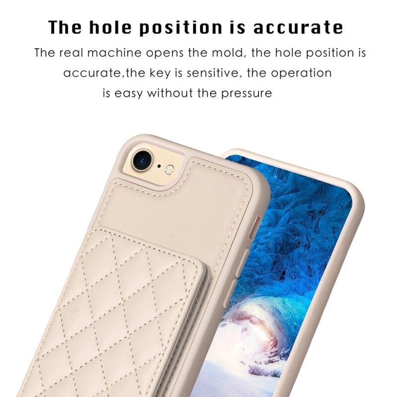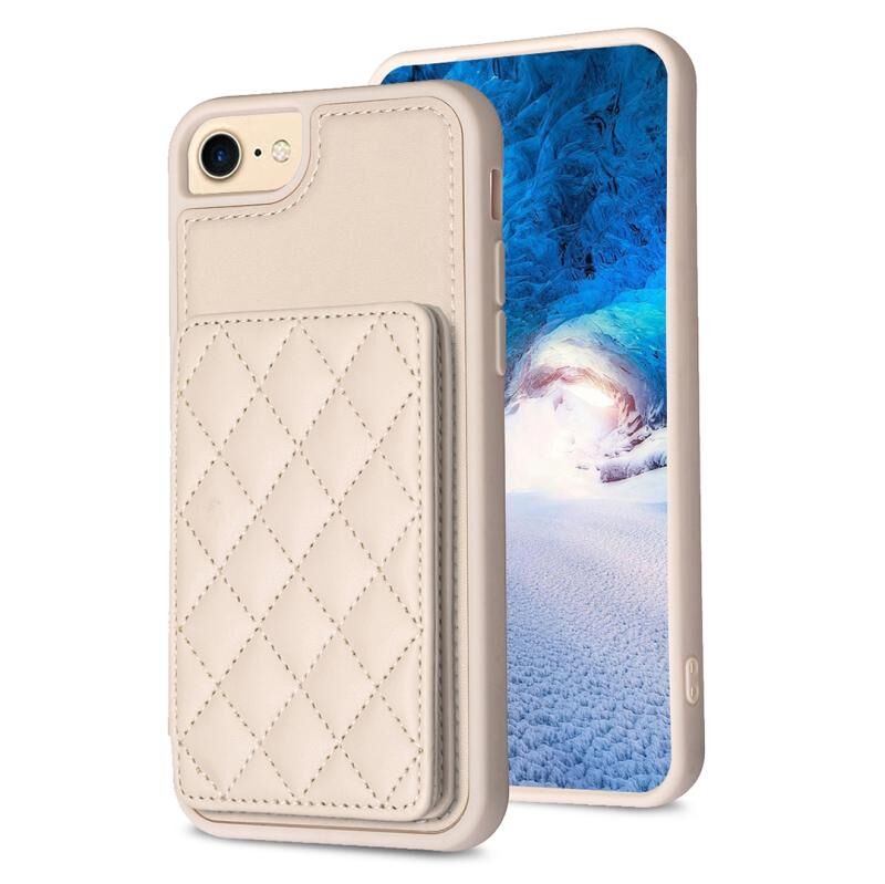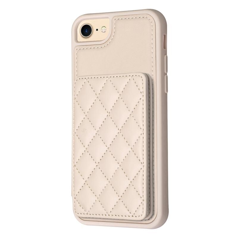 For iPhone SE 2022 / 2020 / 8 / 7 BF25 Square Plaid Card Bag Holder Phone Case(Beige)