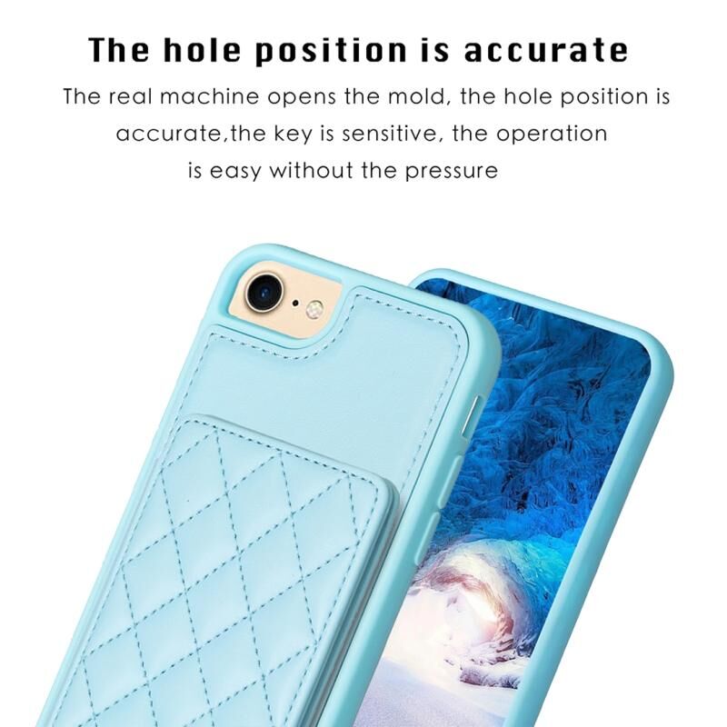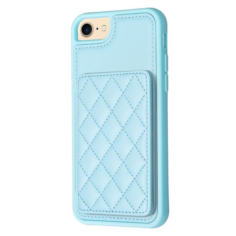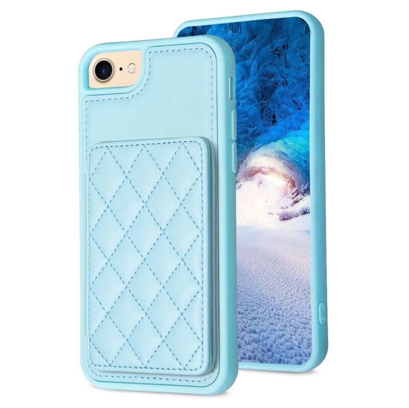 For iPhone SE 2022 / 2020 / 8 / 7 BF25 Square Plaid Card Bag Holder Phone Case(Blue)