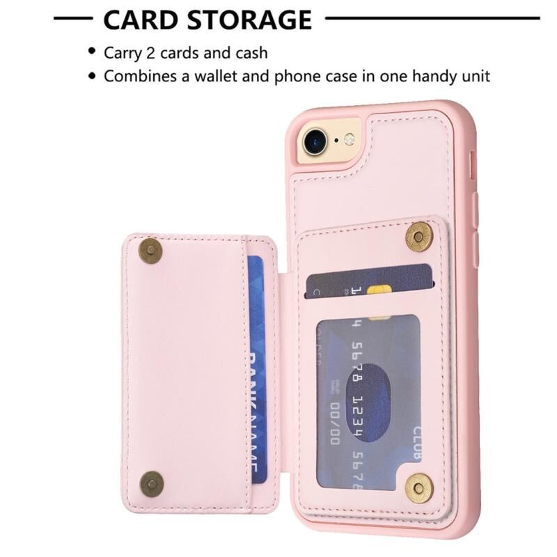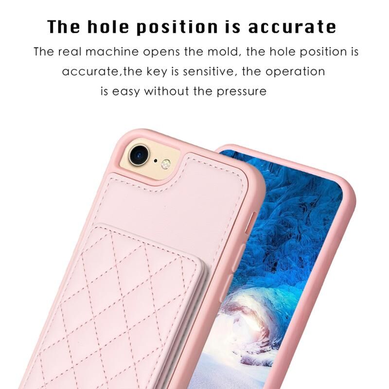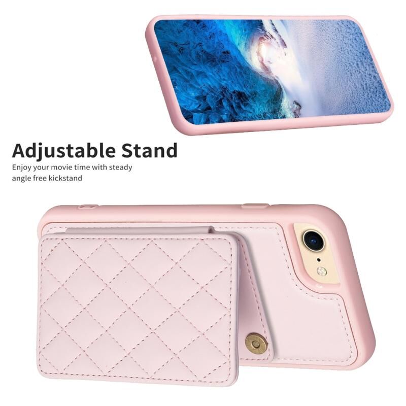 For iPhone SE 2022 / 2020 / 8 / 7 BF25 Square Plaid Card Bag Holder Phone Case(Pink)