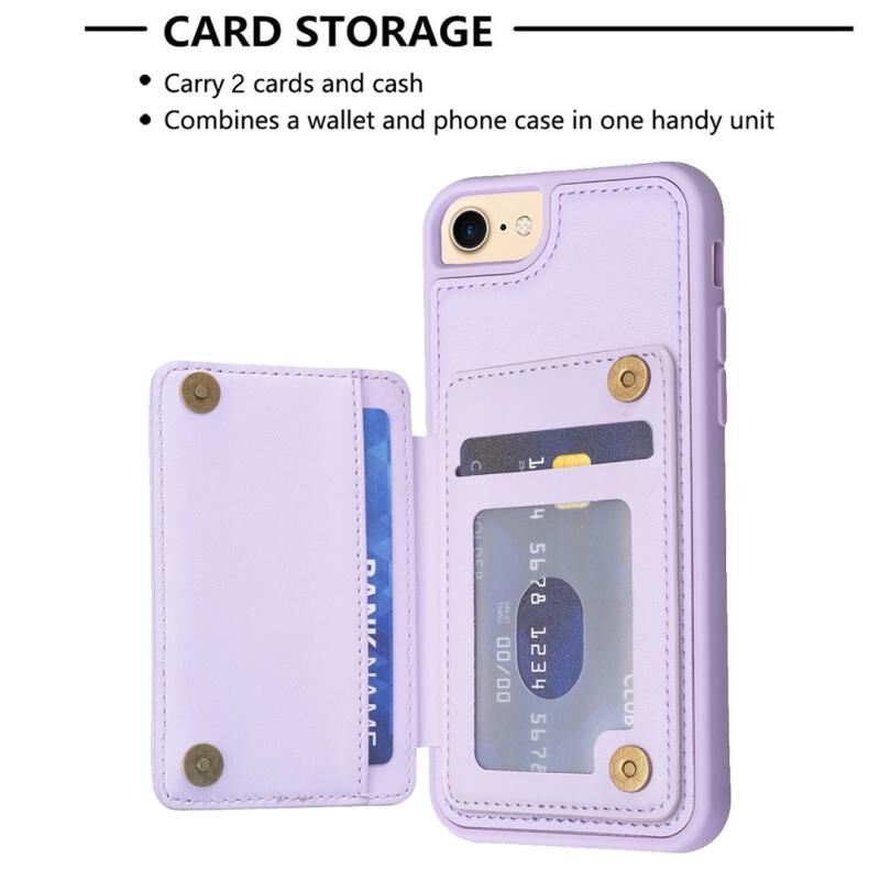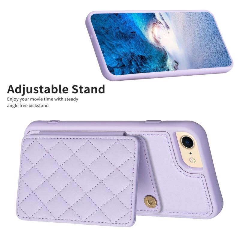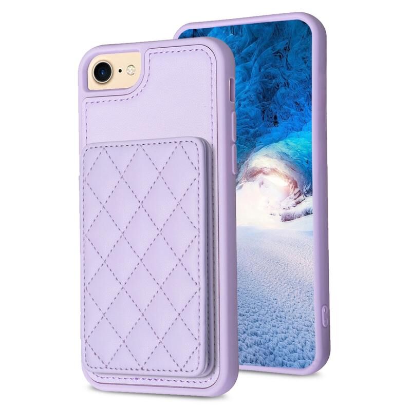For iPhone SE 2022 / 2020 / 8 / 7 BF25 Square Plaid Card Bag Holder Phone Case(Purple)