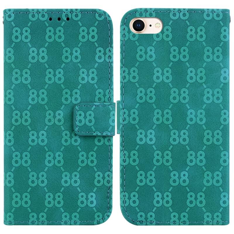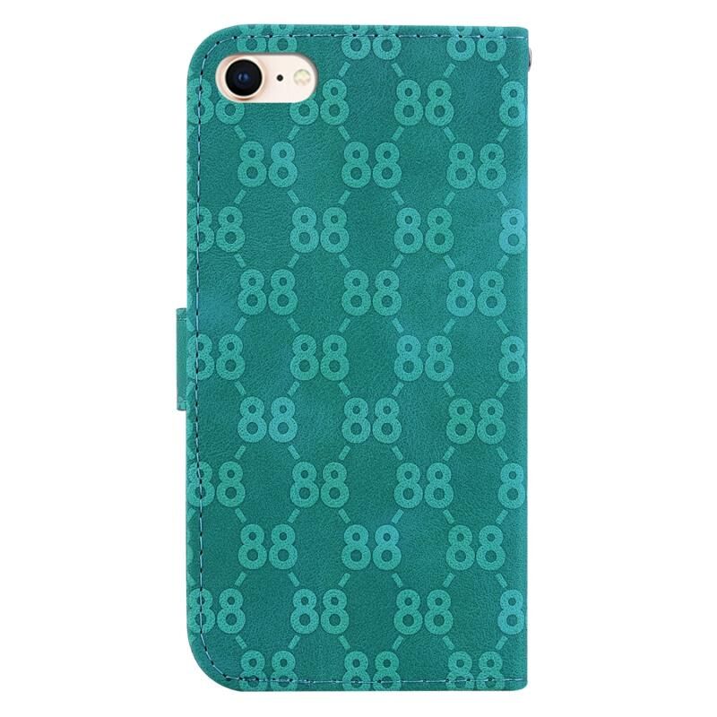 Θήκη τηλεφώνου από δέρμα με ανάγλυφο διπλό σχέδιο σε σχήμα 8 για iPhone SE 2022 / 2020 / 8 / 7 (Πράσινο)