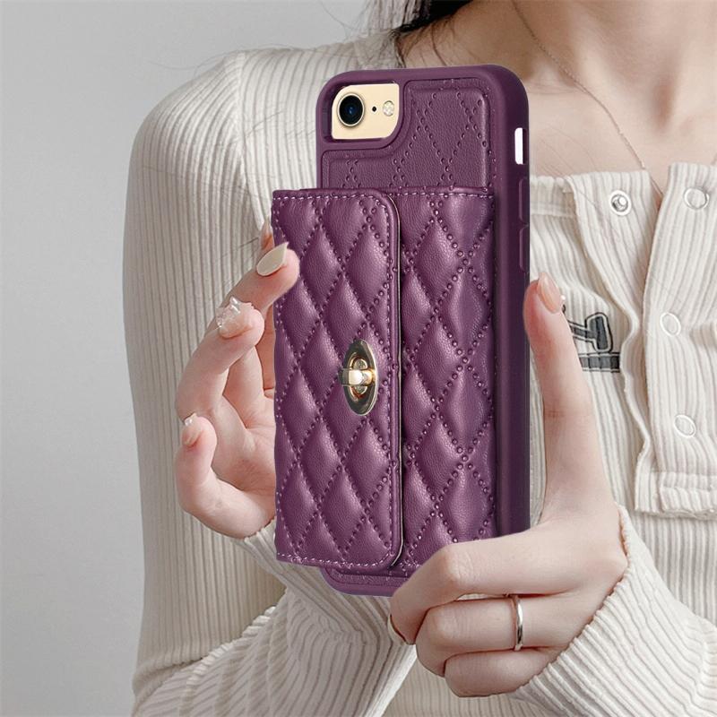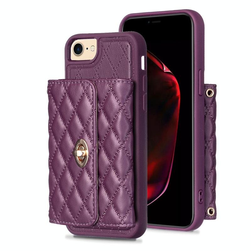 Θήκη iPhone SE 2022/2020/8/7 Δερμάτινη με Πόρπη & Κάρτες (Σκούρο Μωβ)