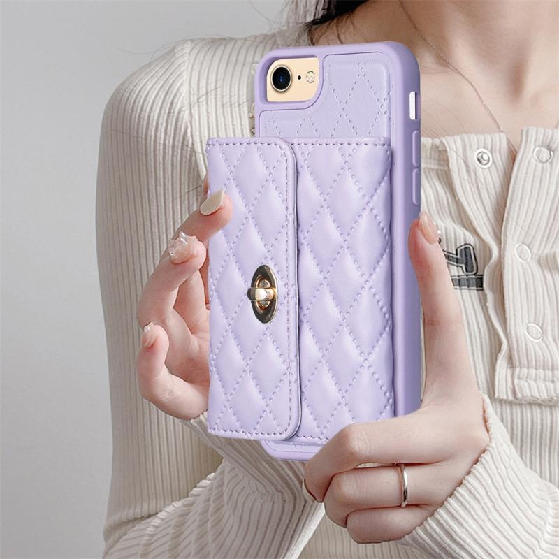Θήκη iPhone SE 2022/2020/8/7 Δερμάτινη με Πόρπη & Κάρτες (Μωβ)