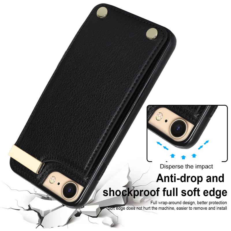 For iPhone SE 2022 / 2020 / 8 / 7 Metal Buckle Card Slots Phone Case(Black)