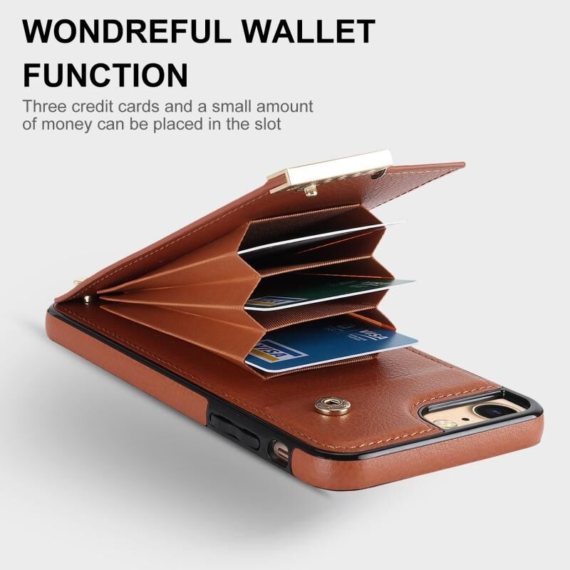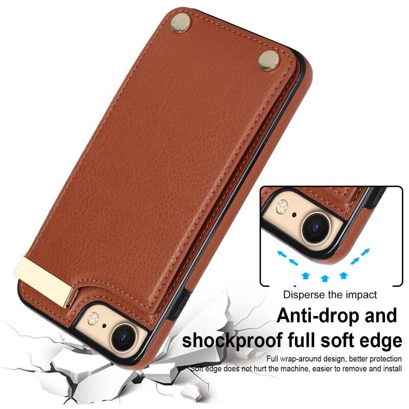 For iPhone SE 2022 / 2020 / 8 / 7 Metal Buckle Card Slots Phone Case(Brown)