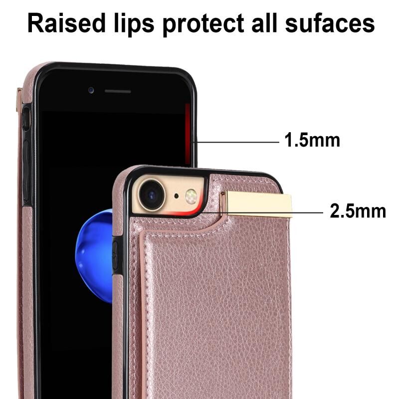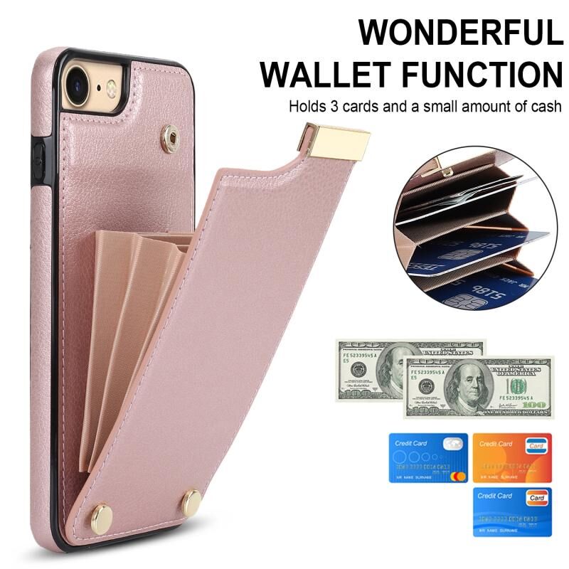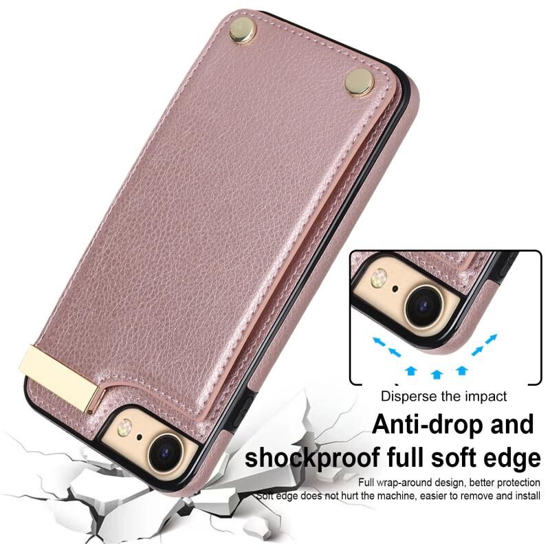 For iPhone SE 2022 / 2020 / 8 / 7 Metal Buckle Card Slots Phone Case(Rose Gold)