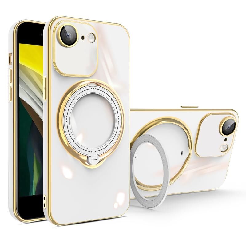 Θήκη τηλεφώνου με πολυλειτουργικό ηλεκτροεπιχρυσωμένο μαγνητικό στήριγμα MagSafe για iPhone SE 2022 / 2020 / 8 / 7 (Λευκό)
