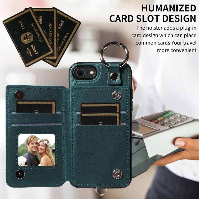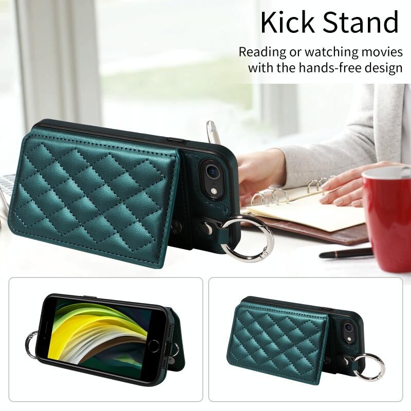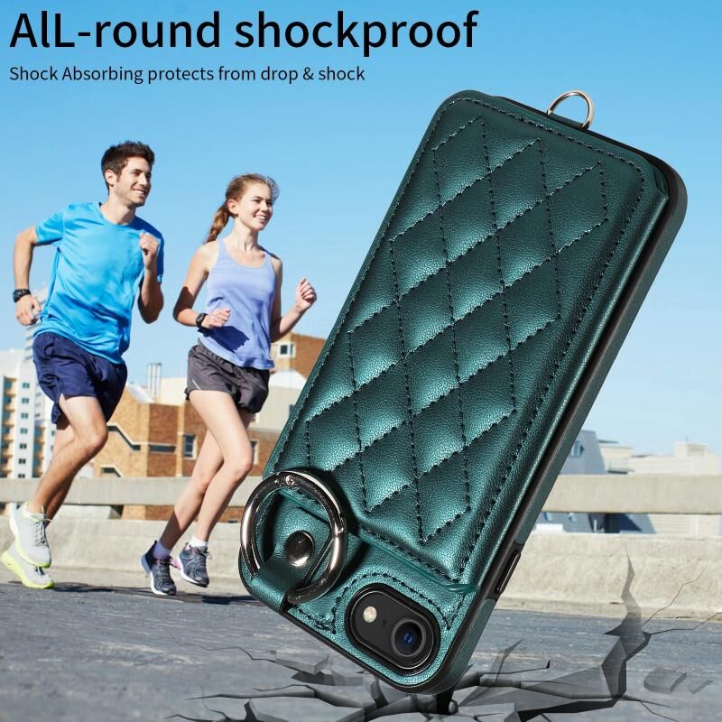 Θήκη κινητού τηλεφώνου με υφή ρόμβου και κοντό κορδόνι για iPhone SE 2022 / 2020 / 8 / 7 (πράσινο)