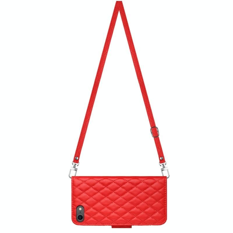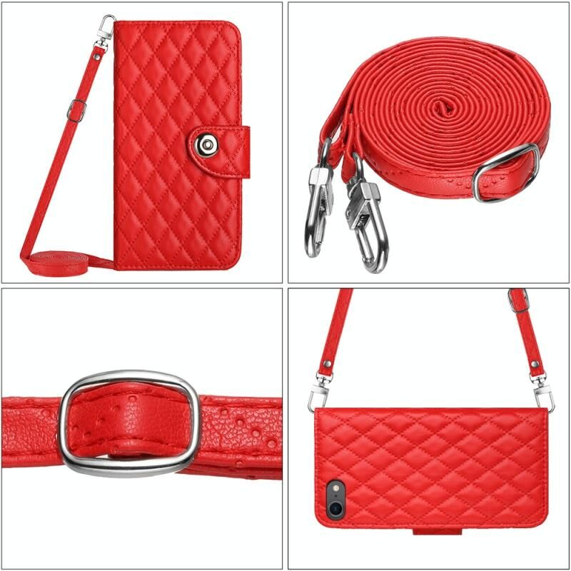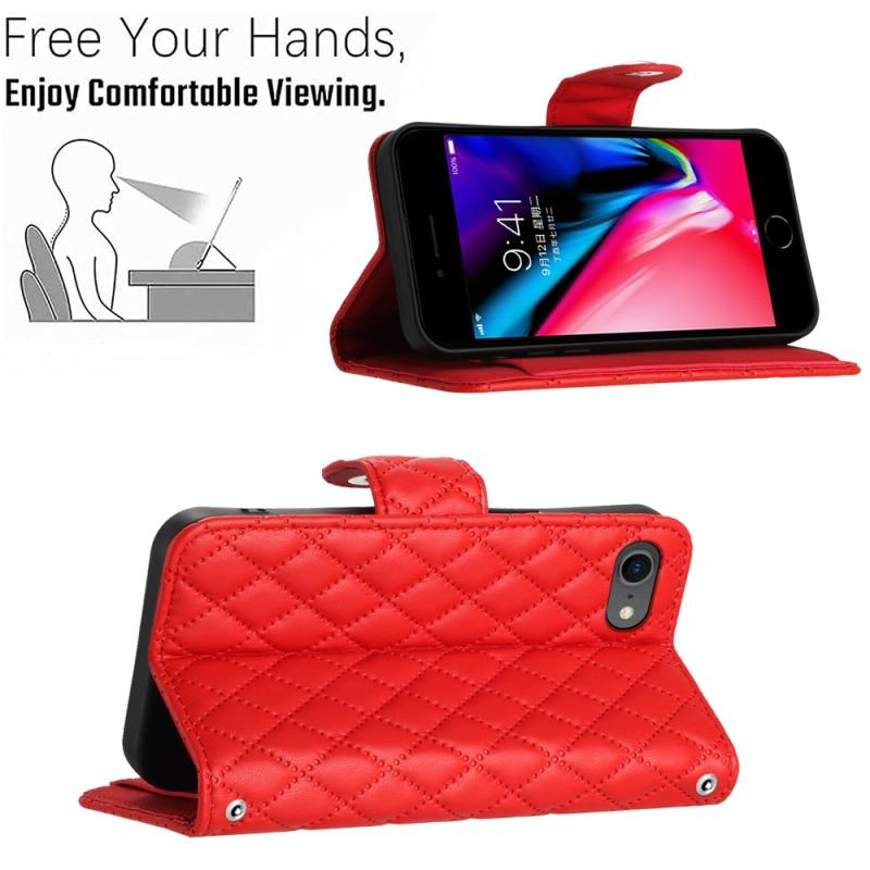 For iPhone SE 2022 / 2020 / 8 / 7 Rhombic Texture Flip Leather Phone Case with Long Lanyard(Red)