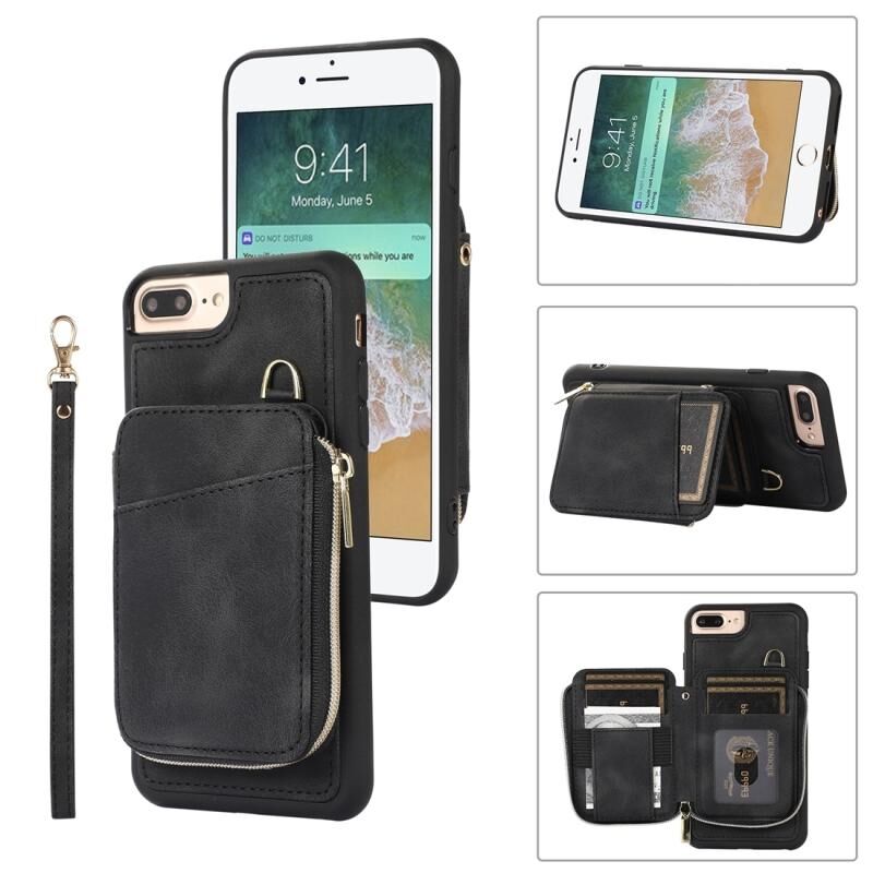 For iPhone SE 2022 / 2020 / 8 / 7 Zipper Card Bag Back Cover Phone Case(Black)