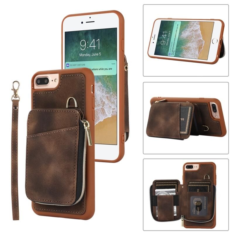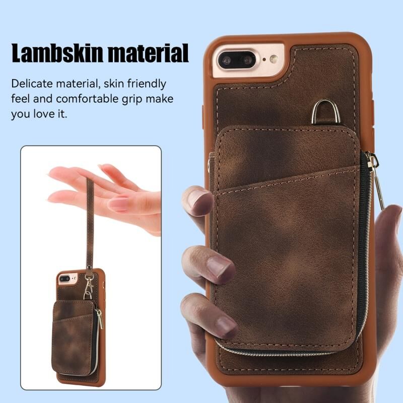 For iPhone SE 2022 / 2020 / 8 / 7 Zipper Card Bag Back Cover Phone Case(Brown)