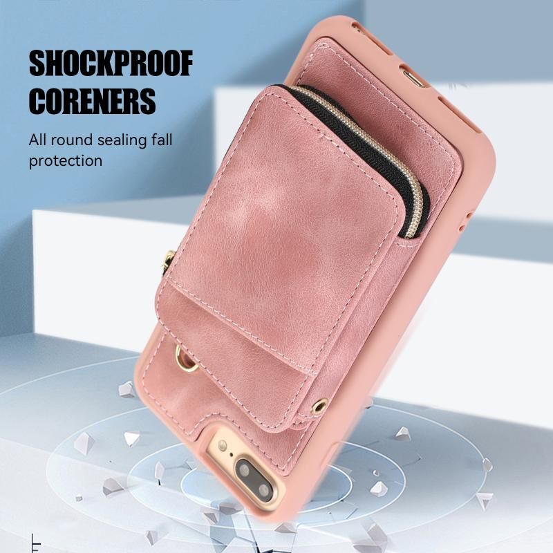 For iPhone SE 2022 / 2020 / 8 / 7 Zipper Card Bag Back Cover Phone Case(Pink)