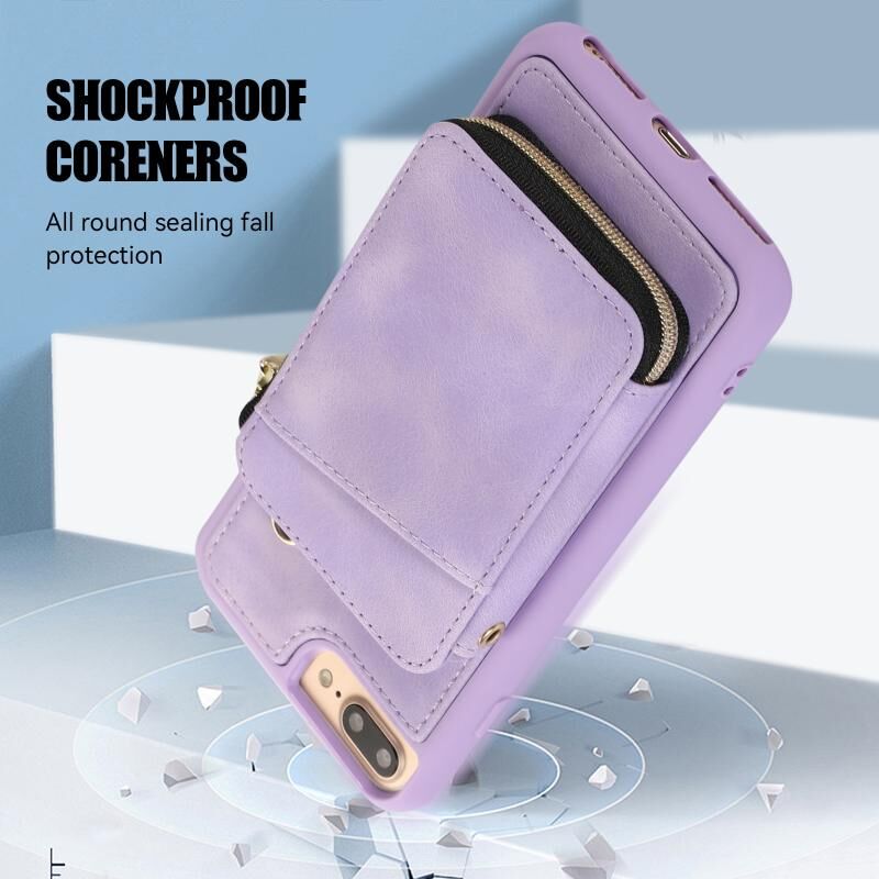 For iPhone SE 2022 / 2020 / 8 / 7 Zipper Card Bag Back Cover Phone Case(Purple)