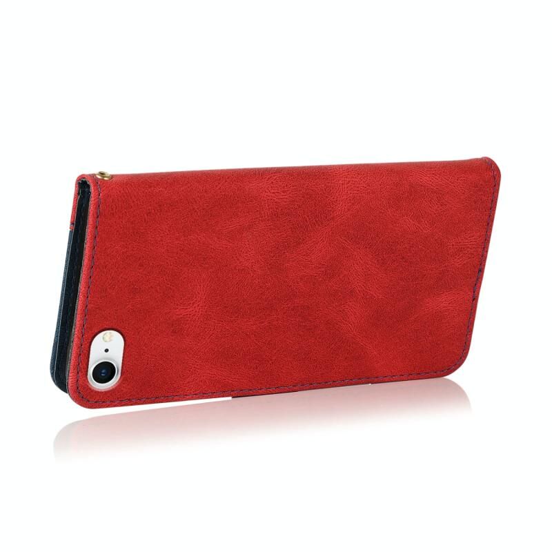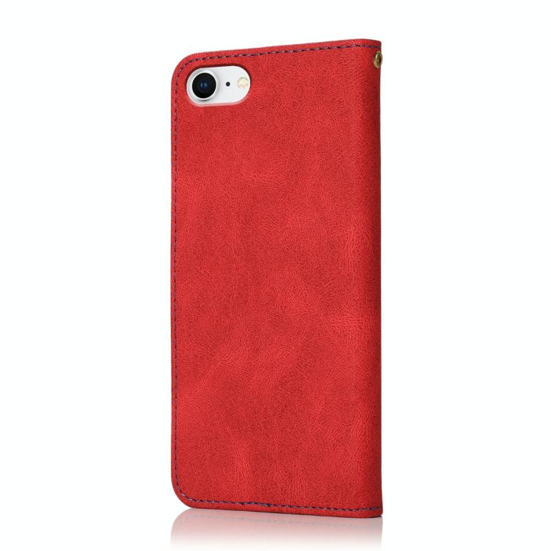 Θήκη Δερμάτινη Διπλής Χρωματικής Ραφής για iPhone SE 2022 / 2020 (Κόκκινο Μπλε)