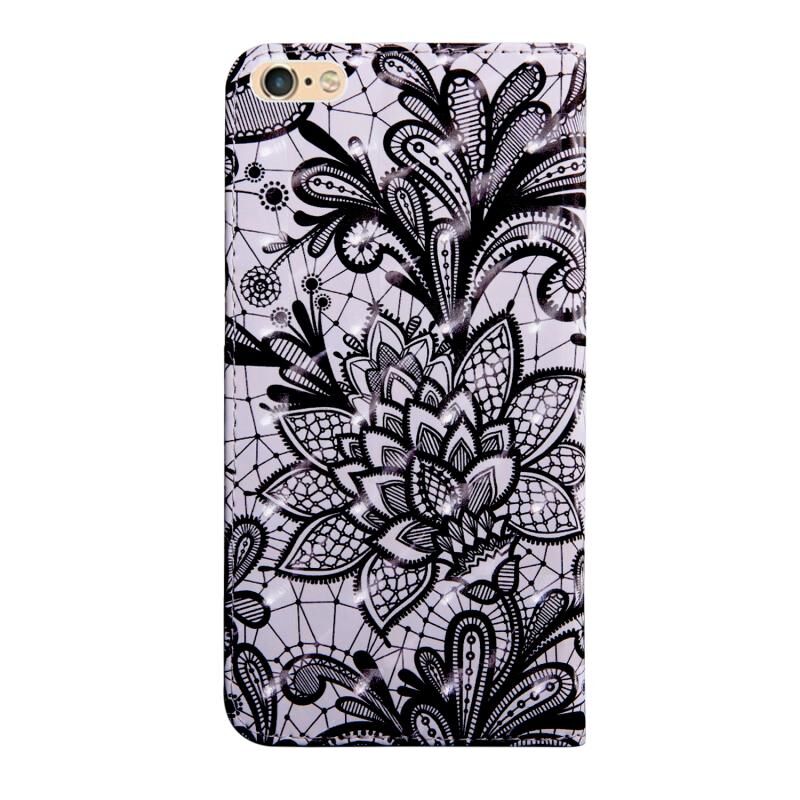 Θήκη τηλεφώνου από δέρμα με σχέδιο 3D ζωγραφικής και πολύχρωμη απεικόνιση για iPhone SE 2022 (Μαύρο Δαντέλα)