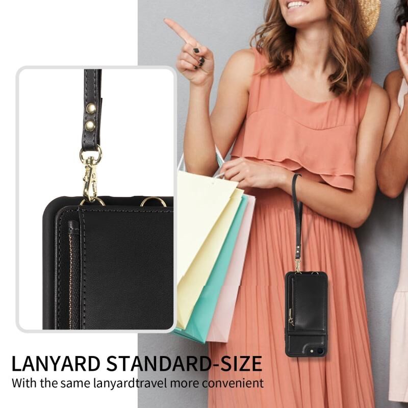 For iPhone SE 2022/ 7 / 8 Crossbody Lanyard Zipper Wallet Leather Phone Case(Black)