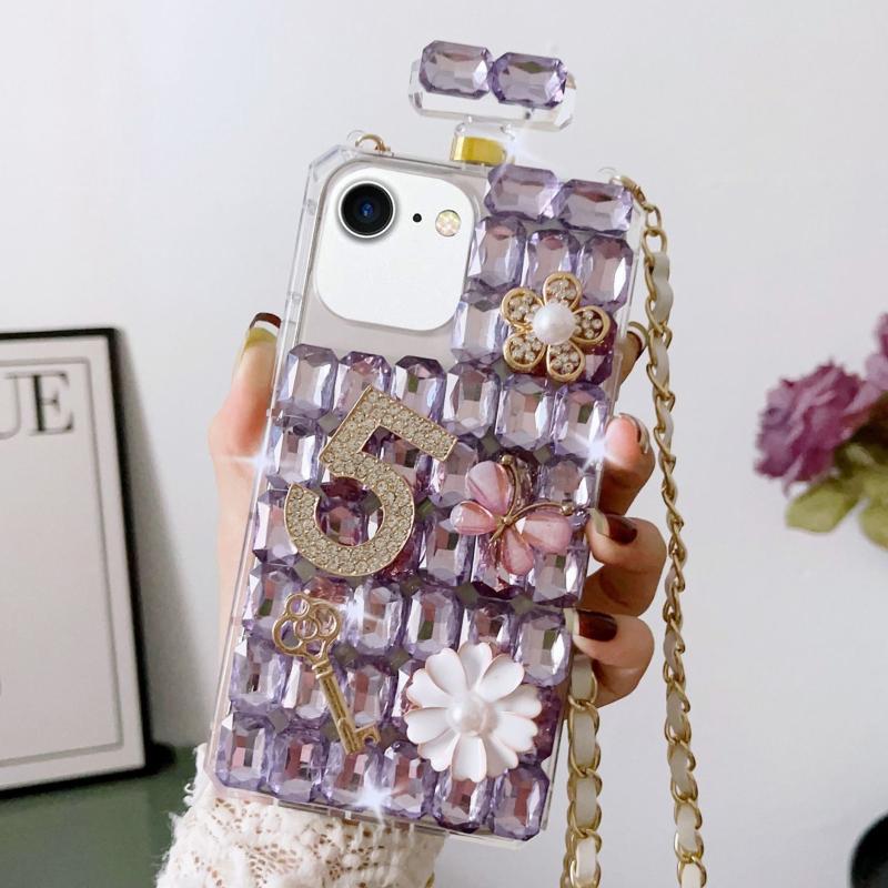 For iPhone SE 2022 / 7 / 8 Crossbody Perfume Bottle Handmade Inlaid Diamond PC Phone Case(Purple)