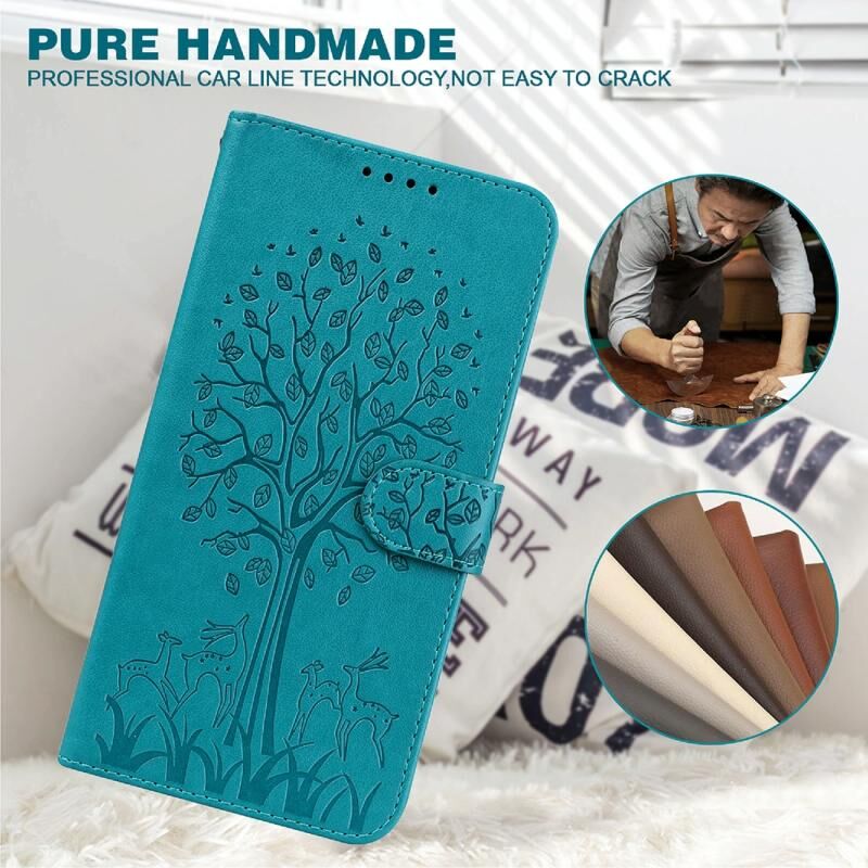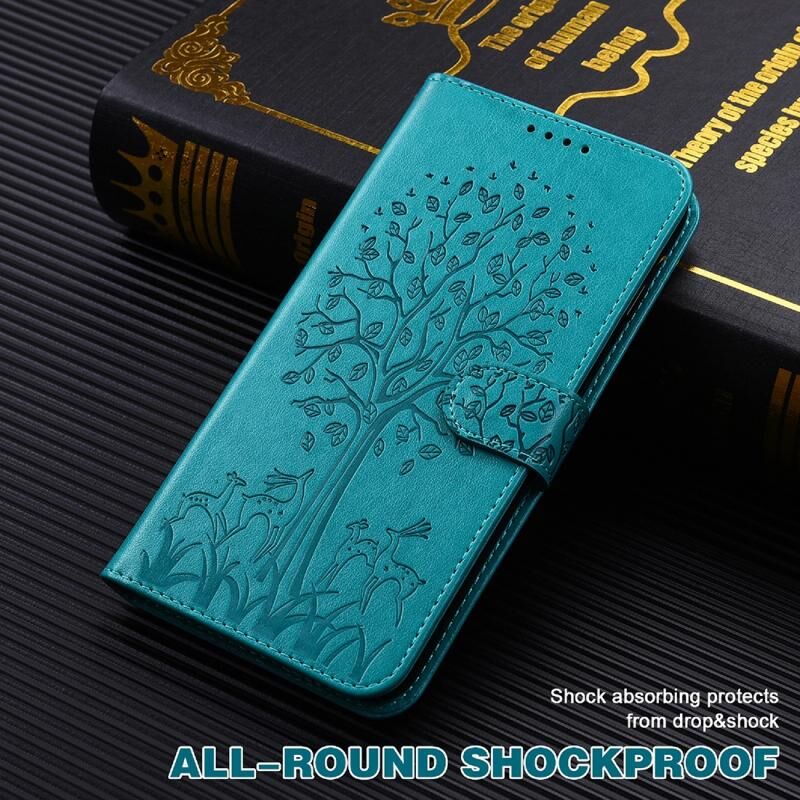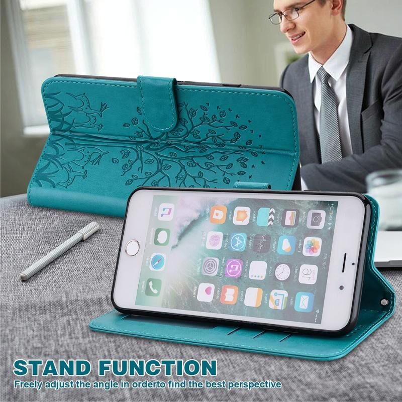 For iPhone SE 2022 / 7 / 8 / SE 2020 Tree & Deer Pattern Pressed Printing Horizontal Flip Leather Phone Case(Blue)