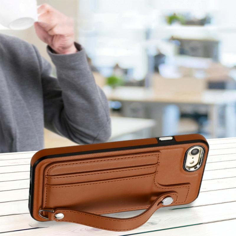 Θήκη iPhone SE 2022/2020/6/7/8 με Δερμάτινο Λουράκι & Προστασία από Πτώσεις (Καφέ)