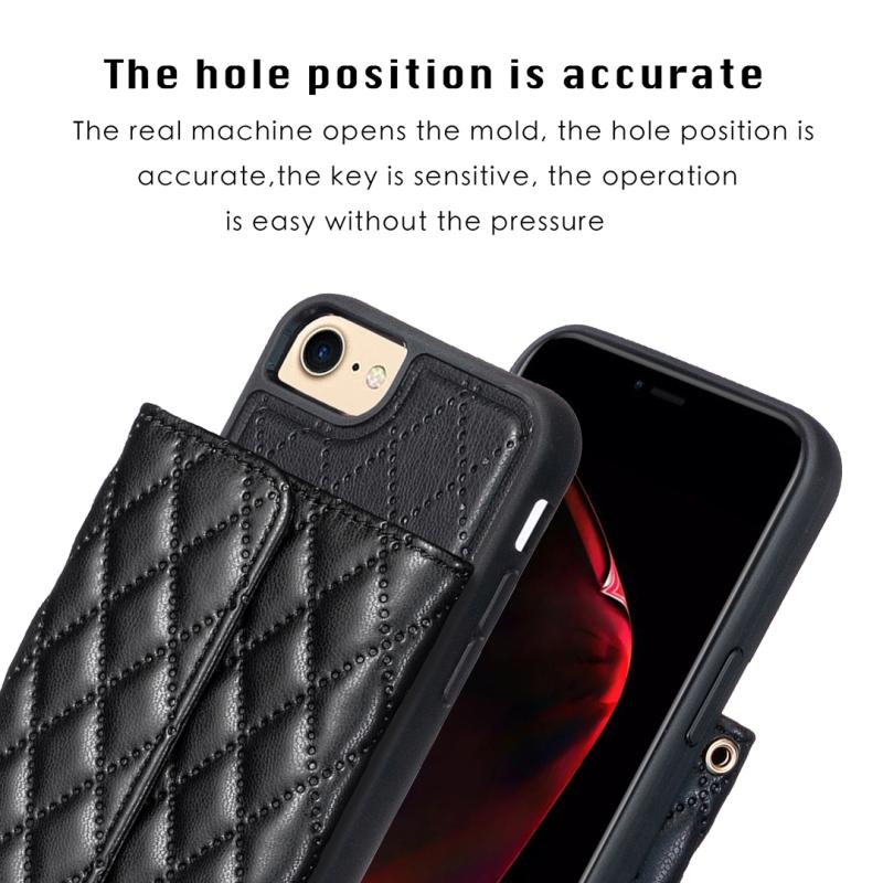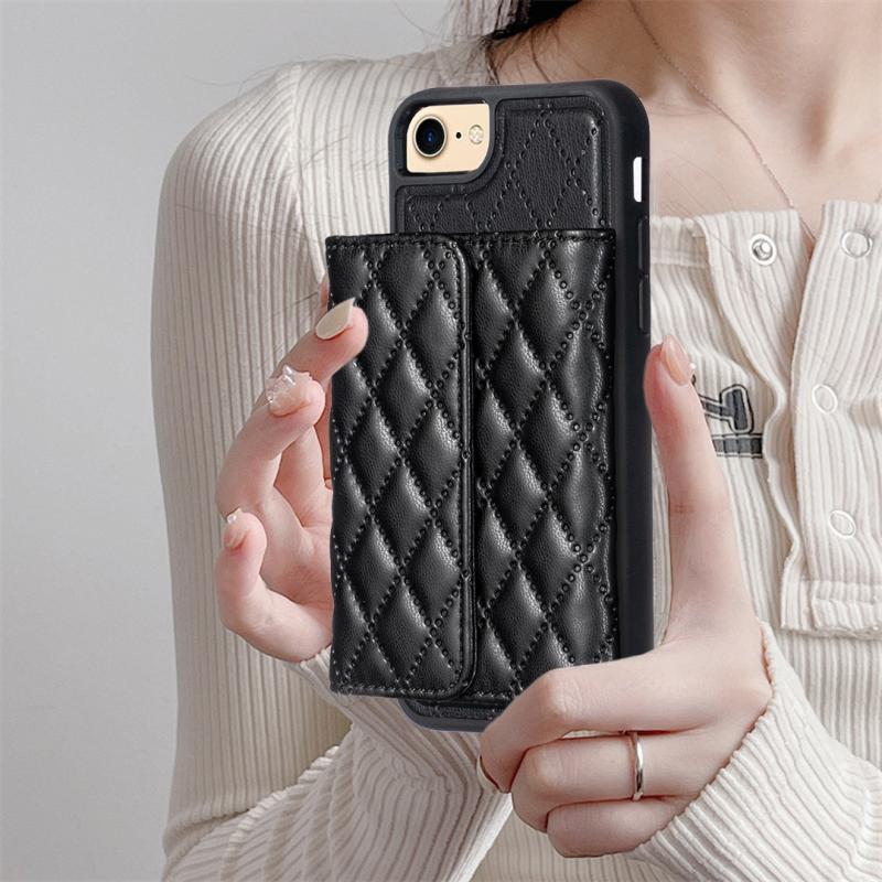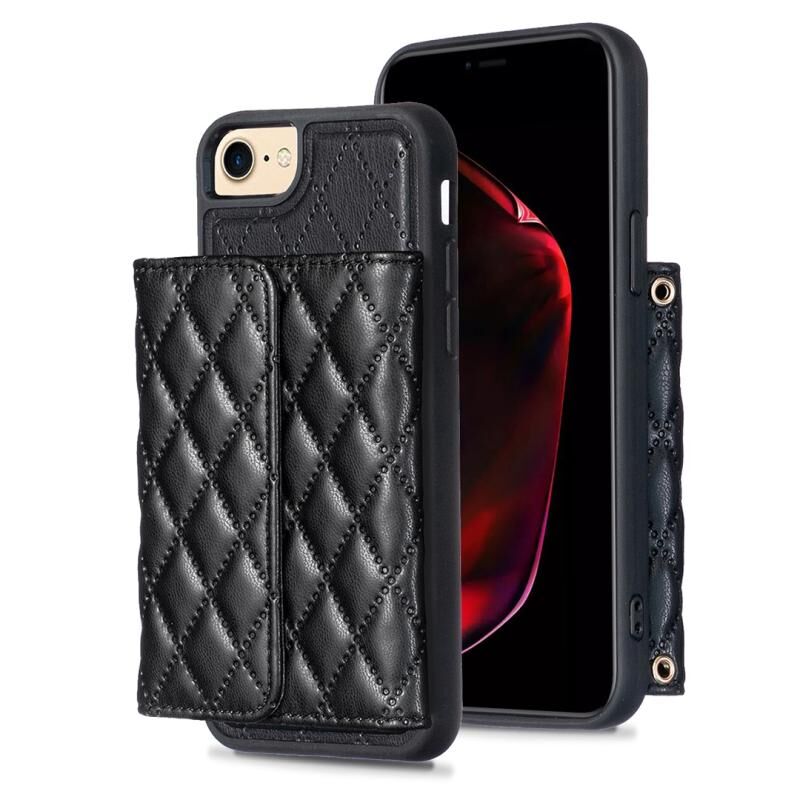 Θήκη πορτοφολιού δέρματος με ρόμβους για iPhone SE 2022 / 2020 / 7 / 8 (Μαύρο)