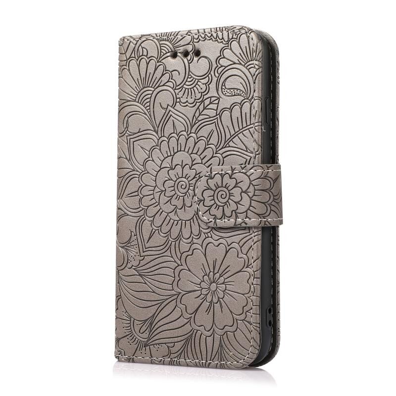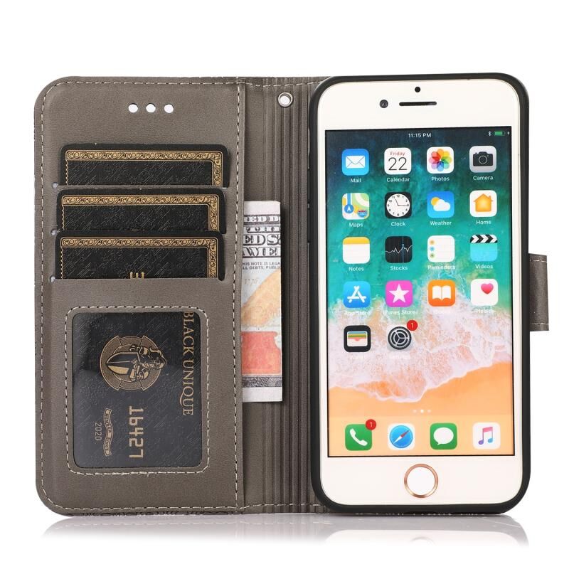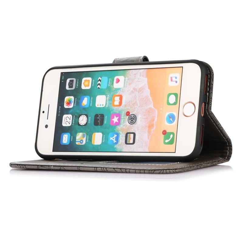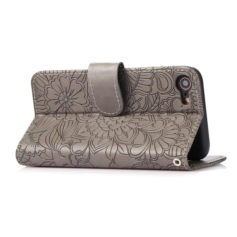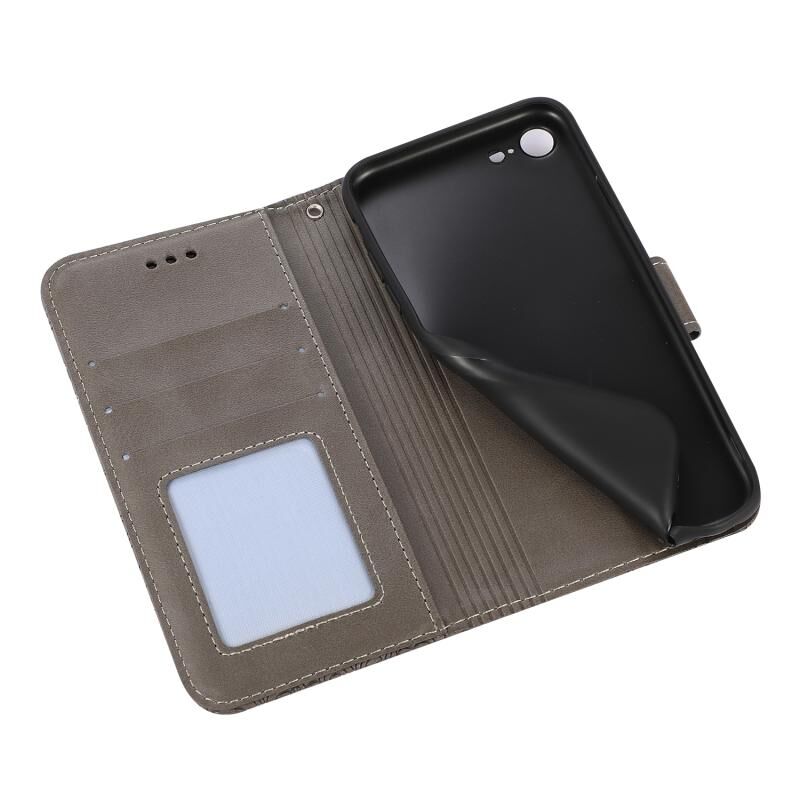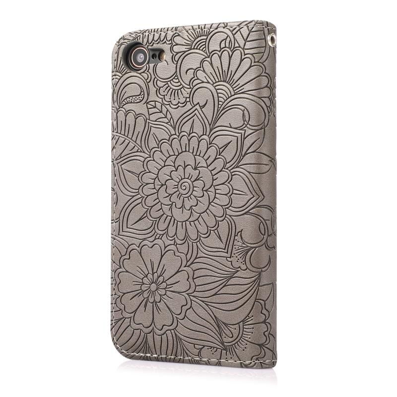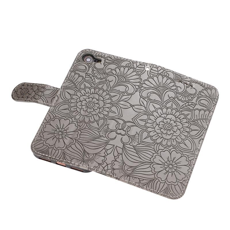 Θήκη δέρματος οριζόντιας αναδίπλωσης με υφή δέρματος για iPhone SE 2022 / SE 2020 / 7 / 8 με σχέδιο ηλίανθου, με βάση & θήκες καρτών & πορτοφόλι & κορδόνι (Μωβ)