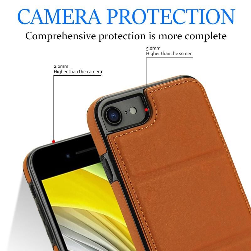 For iPhone SE 2022 / SE 2020 / 7 / 8 Tri-fold Holder Leather Phone Case with Card Slot(Brown)