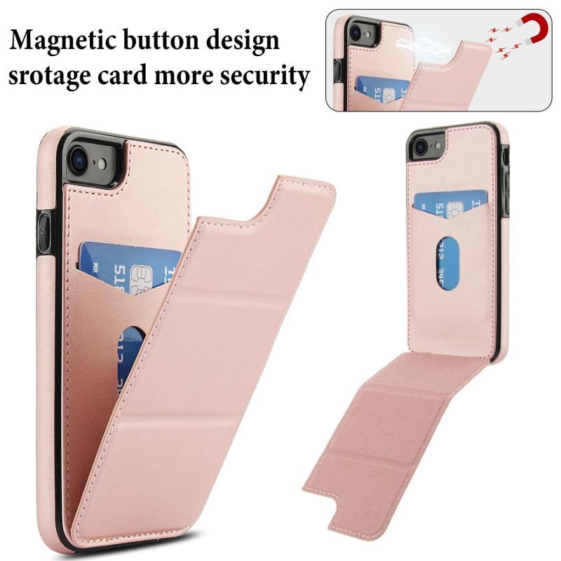 For iPhone SE 2022 / SE 2020 / 7 / 8 Tri-fold Holder Leather Phone Case with Card Slot(Rose Gold)