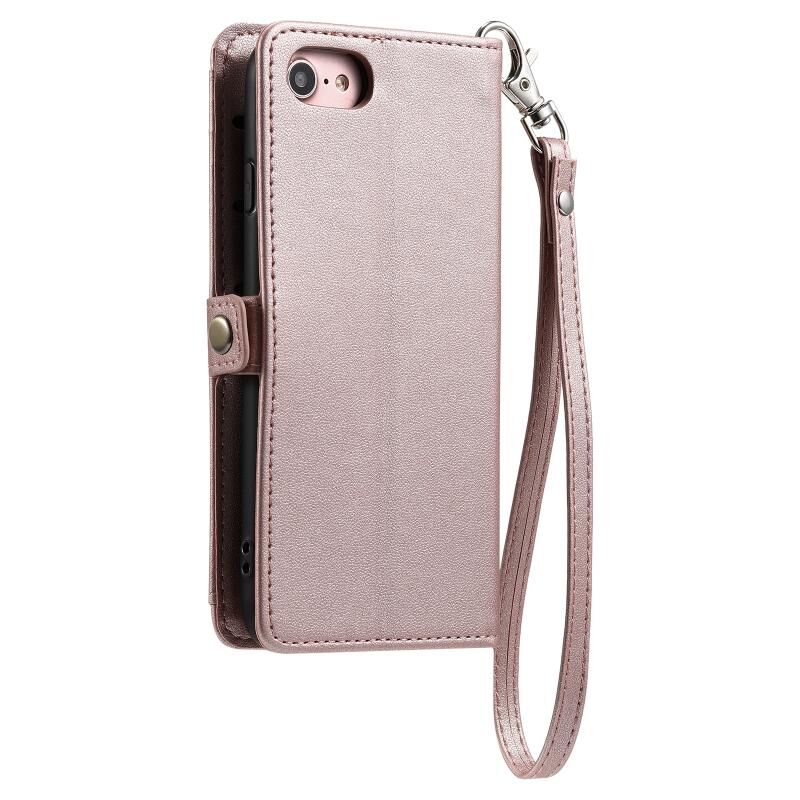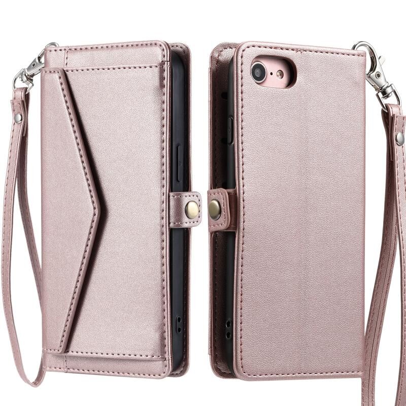 For iPhone SE 2022 / SE 2020 / 7 / 8 Wallet Multi-card Slot Leather Phone Case with Lanyard(Rose Gold)