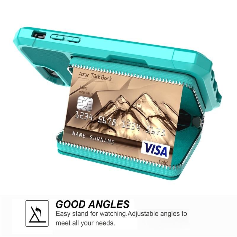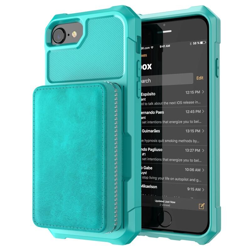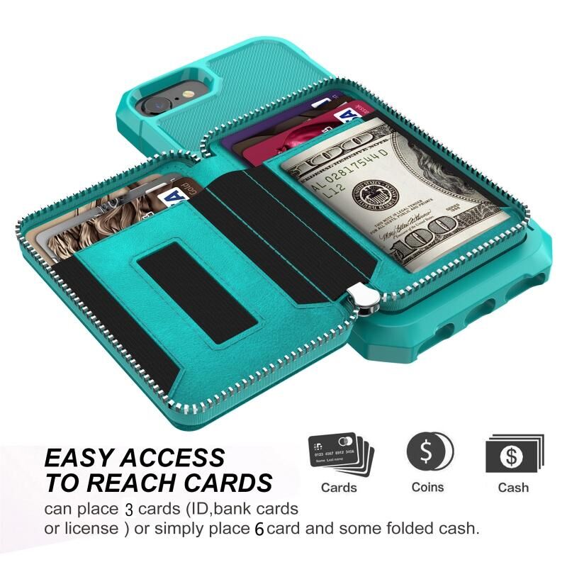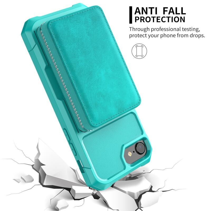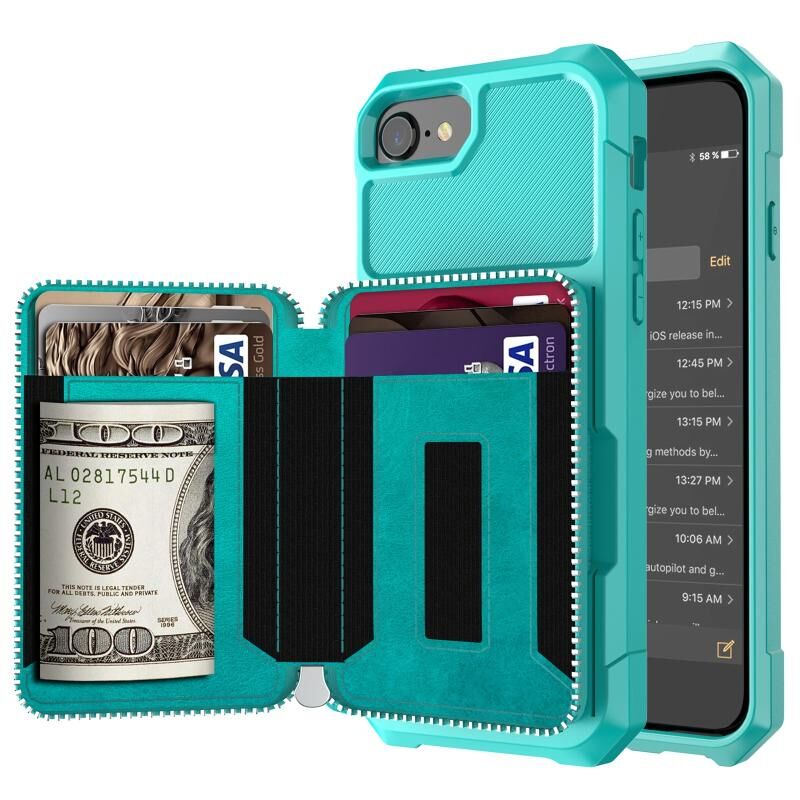 Για iPhone SE 2022 / SE 2020 / 8 / 7 / 6 / 6s Θήκη Πορτοφολιού με Φερμουάρ και Κάρτες, από PU Δέρμα (Πράσινο)