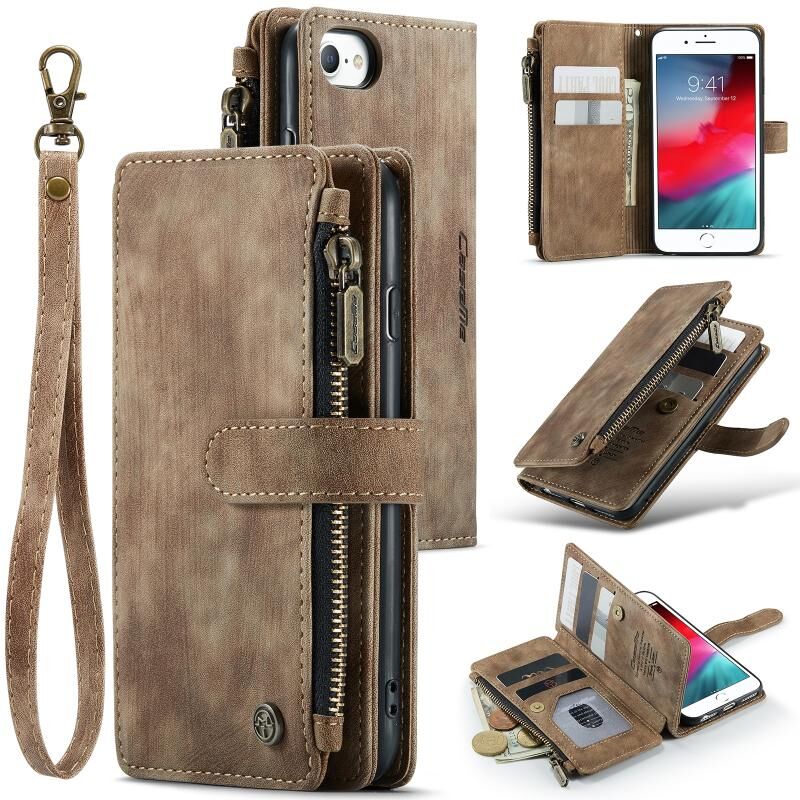 For iPhone SE 2022 / SE 2020 / 8 / 7 / 6 CaseMe-C30 PU + TPU Multifunctional Horizontal Flip Leather Case with Holder & Card Slot & Wallet & Zipper Pocke(Brown) (CaseMe)