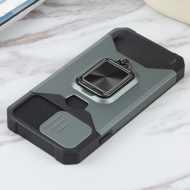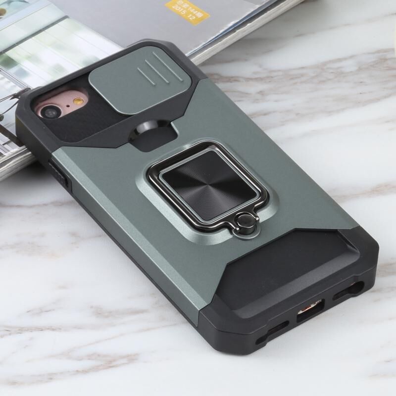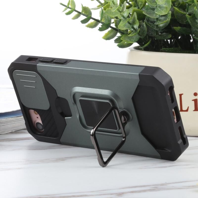 Θήκη για iPhone SE 2022 / SE 2020 / 8 / 7 / 6s / 6 με σχεδιασμό συρόμενου καλύμματος κάμερας, κατασκευασμένη από PC + TPU, ανθεκτική στις κρούσεις, με δακτύλιο στήριξης & θήκη για κάρτες (Μαύρο)