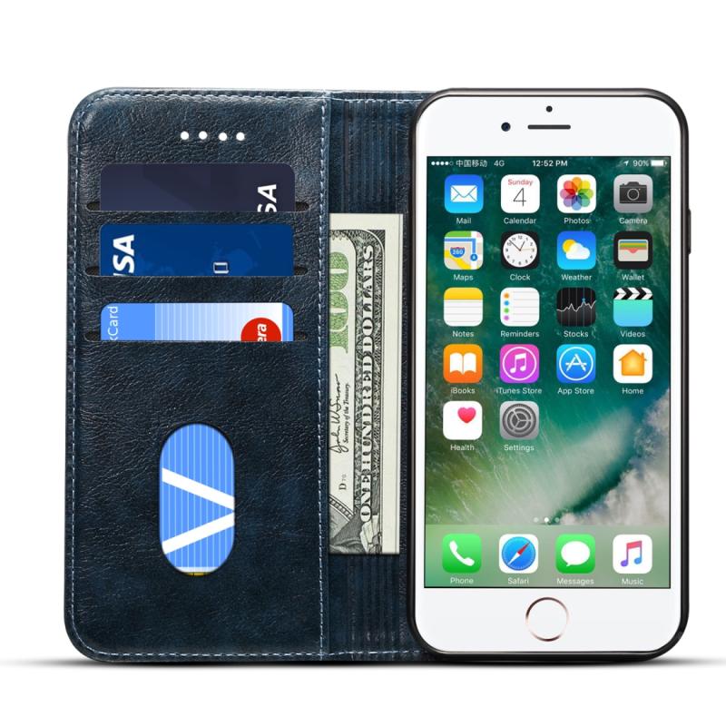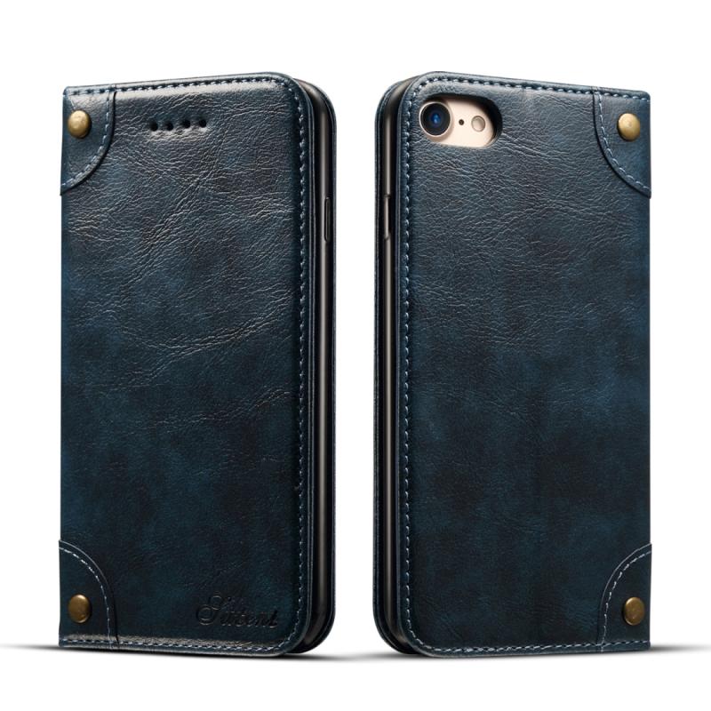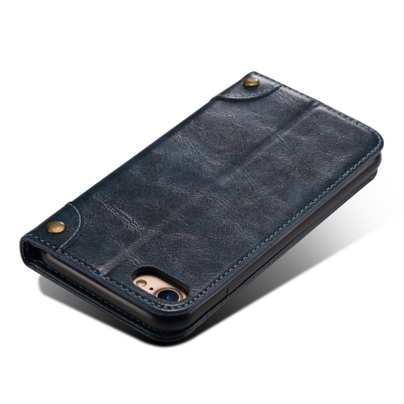 Θήκη δέρματος οριζόντιας αναδίπλωσης για iPhone SE 2022 / SE 2020 / 8 / 7, Μπαρόκ, απλή, με βάση & υποδοχές καρτών & πορτοφόλι (Μπλε)