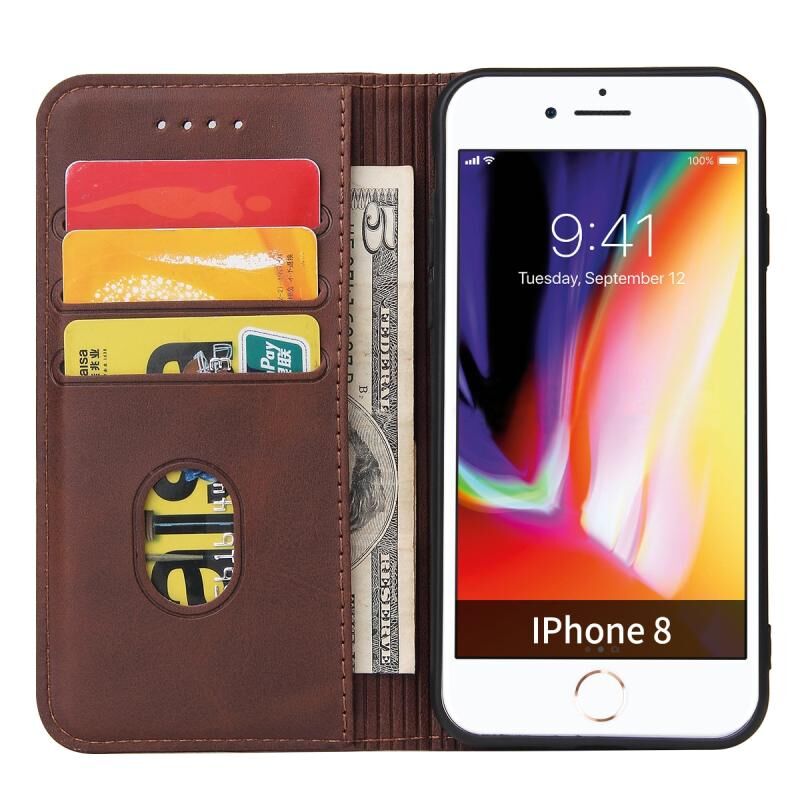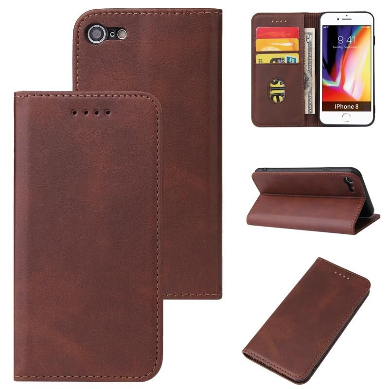 For iPhone SE 2022 / SE 2020 / 8 / 7 Calf Texture Magnetic Horizontal Flip Leather Case with Holder & Card Slots & Wallet(Brown)