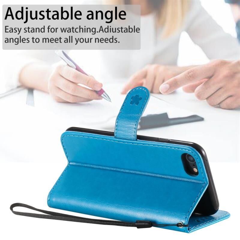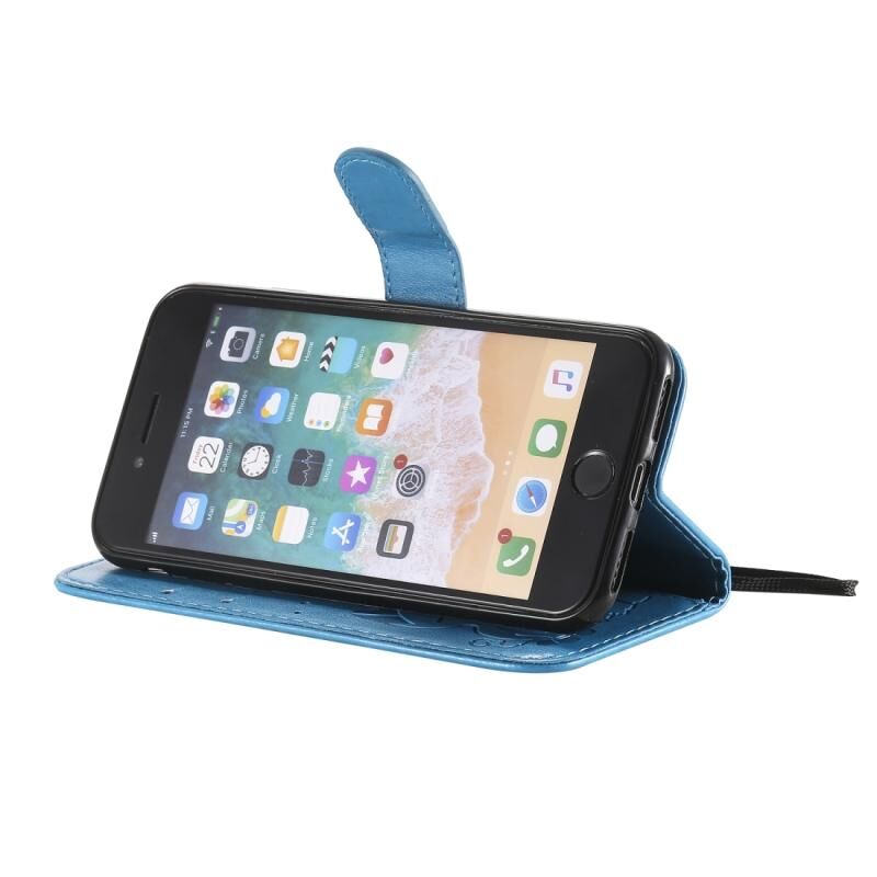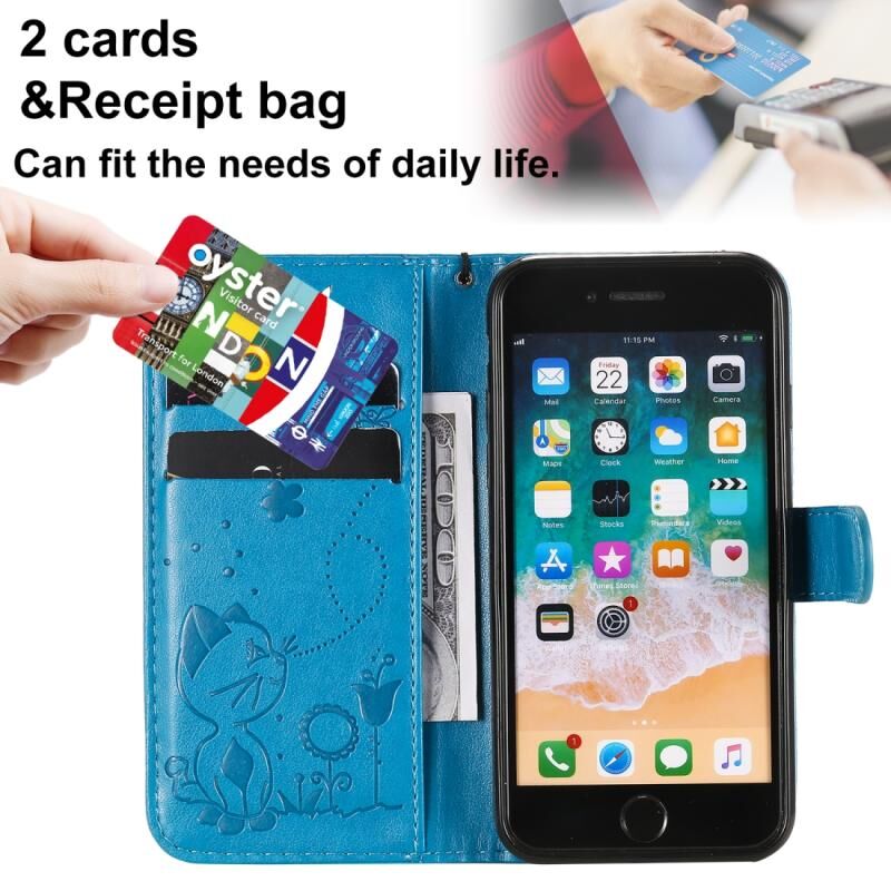 For iPhone SE 2022 / SE 2020 / 8 / 7 Cat Bee Embossing Pattern Shockproof Horizontal Flip Leather Case with Holder & Card Slots & Wallet(Blue)